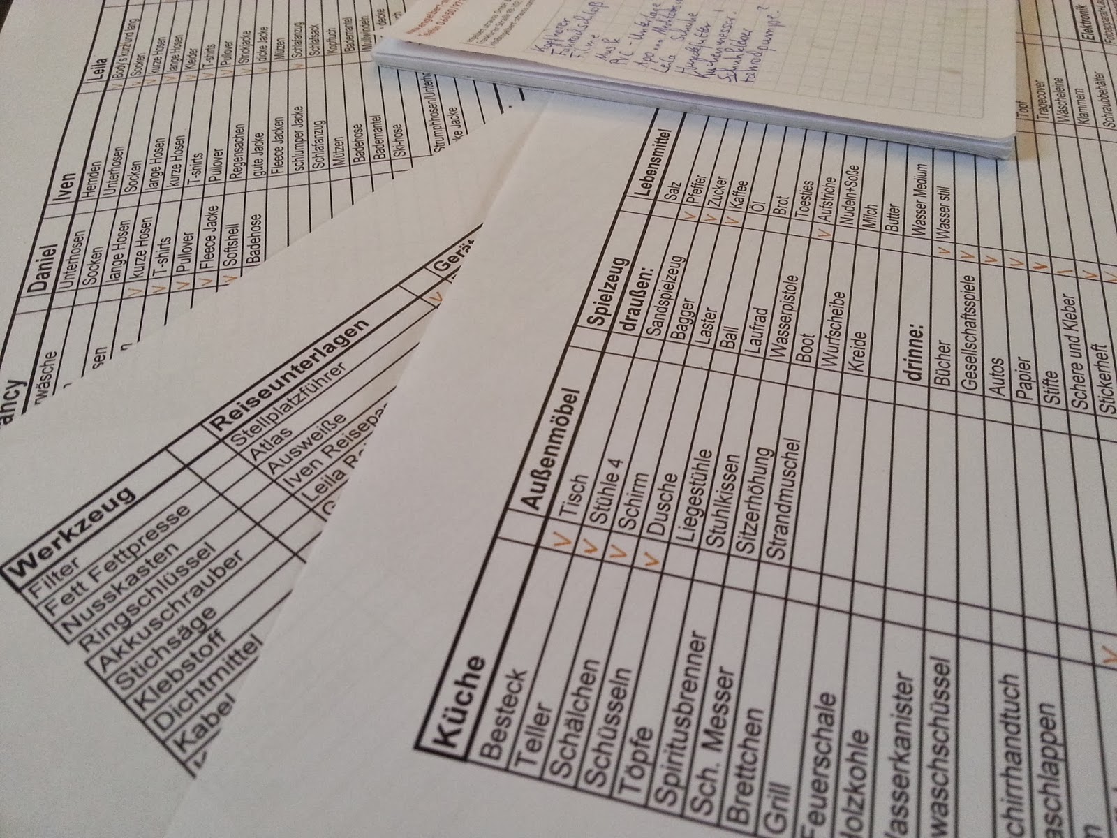 Jaja… die Zeit vergeht immer gleich und dennoch Relativ! Überall um uns sind Countdowns bis zur Abreise. Selbst auf Arbeit lacht mich solch einer Dank der Netten Kollegen auf unserem System Überwachungsbildschirm an…. Ausserdem ähnelt die Wohnung einem Schnipseljagt vorbereitungs Büro… Überall Schnipsel und Zettel mit Listenähnlichen Einträgen… mal handschriftliche mal ausgedruckte… 🙂 Was man alles so mitnehmen mus… Früher habe ich einen Plastikbeutel ins Auto geschmissen und bin losgefahren… Huch Schlüpfer vergessen… macht nichts kauft man welche. Heute kann mir das nicht mehr passieren, Dank meiner sehr organisierten Nancy. Ich weiß dank der Listen nun auch das ich nicht nur eine Fettpresse mitnehmen mus… nein auch das entsprechende Fett…