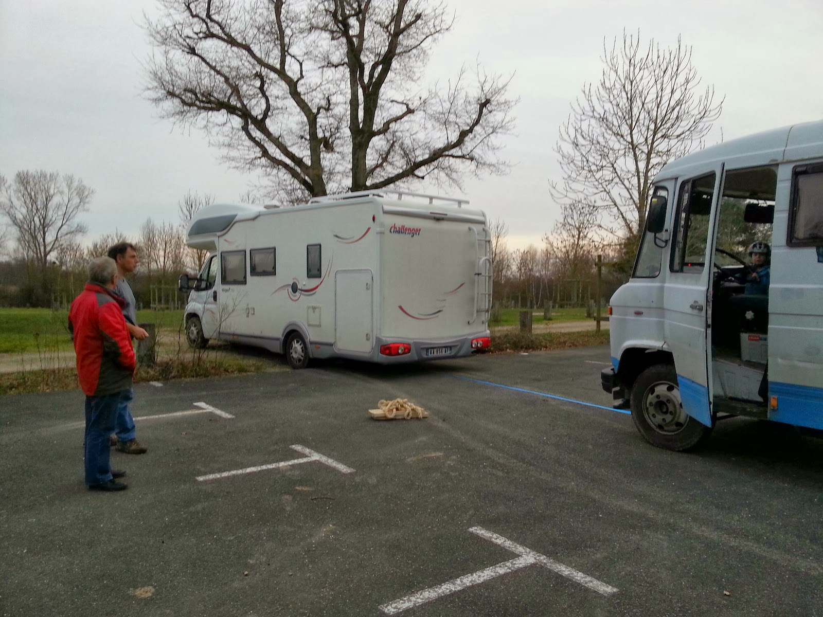 Während ich Camperkollegen kennenlernte hat sich ein Franzose auf der Wiese festgefahren. .. also nicht nur ich schaffe so etwas. Nach kurzem Versuch ihn raus zu schieben, war klar dass das nicht klappen wird. Also schnell unseren Dicken geholt und dieses Plastikspielzeug von Wohnmobil aus dem Morast gezogen… es waren noch weitere Wohnmobile am Platz, aber die hatten anscheinend alle Angst um ihre teuer finanzierten Eigenheime auf vier Rädern… um so überraschter waren sie dann was diese alte Technik doch so drauf hat. 🙂