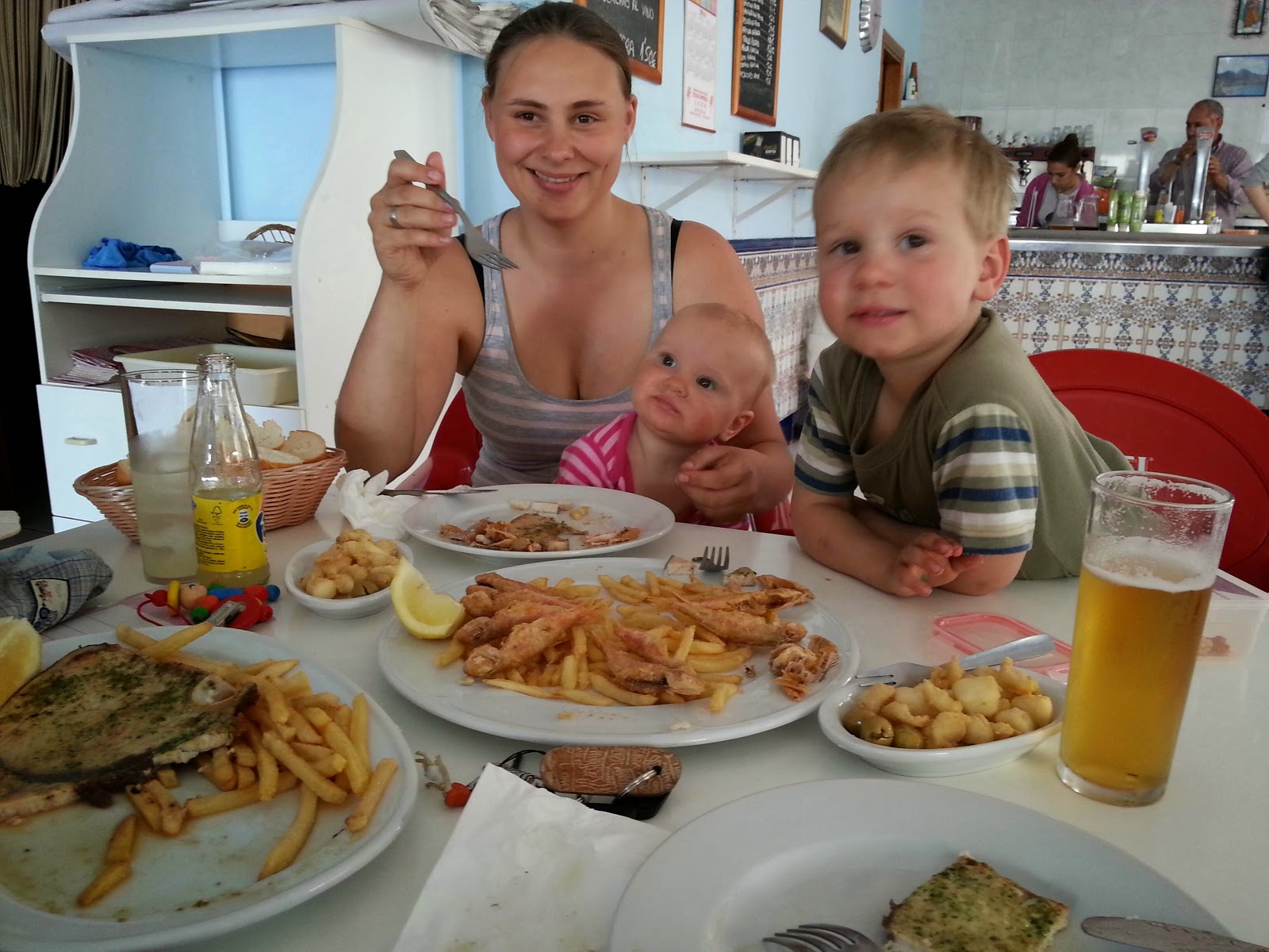 Angekommen zurück am Ausgang vom Fischerdörfchen waren wir dann hier erst mal richtig gut und viel Mittagessen. Zum Abendbrot gab es dann noch unseren Fisch vom Angler. Iven war nicht ins Bett zu bekommen und hat schön mit den Grill bedient, während Leila nur noch davon träumte….