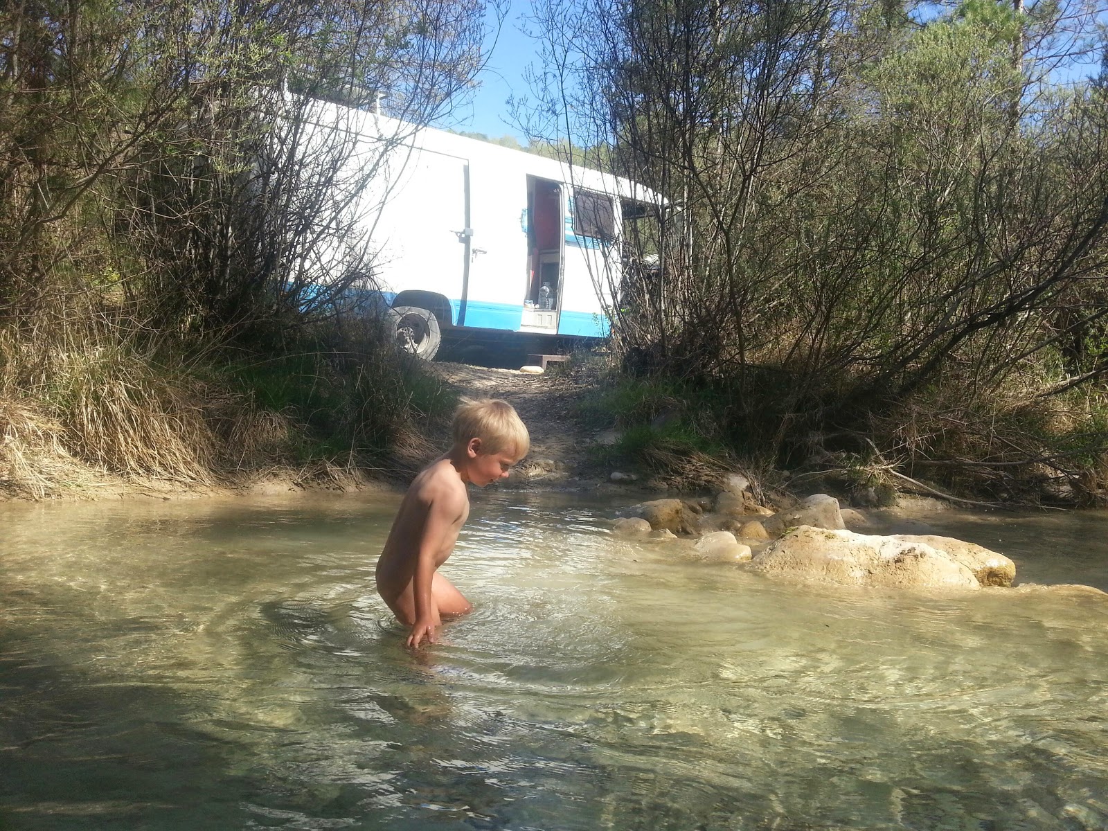 Wir standen eine Nacht wieder in einem kleinen Ort nahe einem AKW. Wir wollten Essen gehen… aber es gab nichts. Wir haben beschlossen Chips zu essen bis wir am Laster sind. So zusagen als Vorspeise. Im Laster haben wir uns dann erst mal eine schöne Suppe gekocht. Am Nächsten Morgen ging es dann an einen Bergfluss der in einen Stausee fließt. Hier haben wir in dem schönen Fluß gebadet. Der Laster wurde mal wieder ausgiebig auf seine Geländegängigkeit getestet. Wir sind mal wieder erstaunt was alles so geht. 🙂