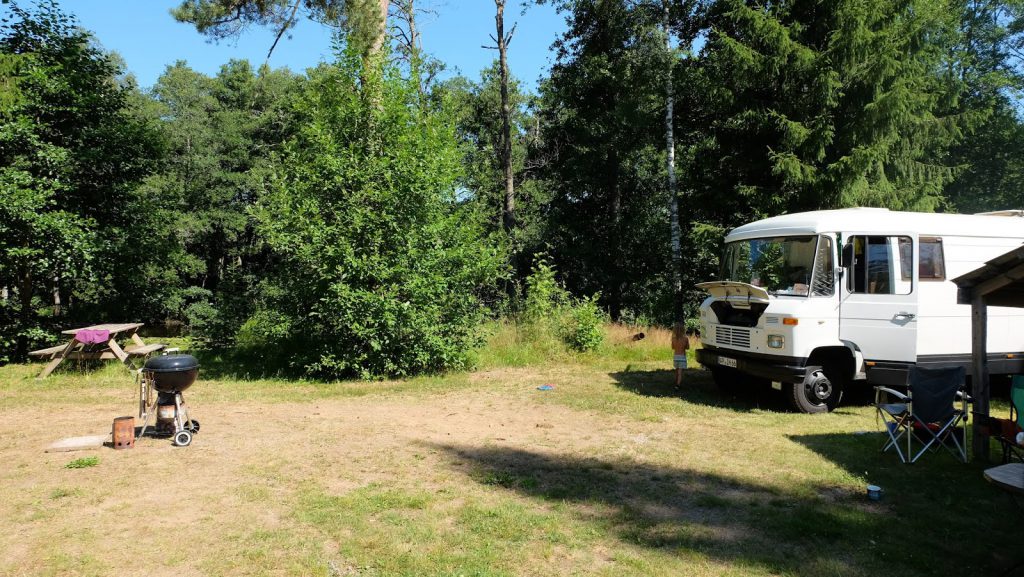 Jetzt stehen wir auf einem Naturcampingplatz an einem sehr kleinen See. Mit jedem Tag geht es nun wieder stark auf Trelleborg zu.