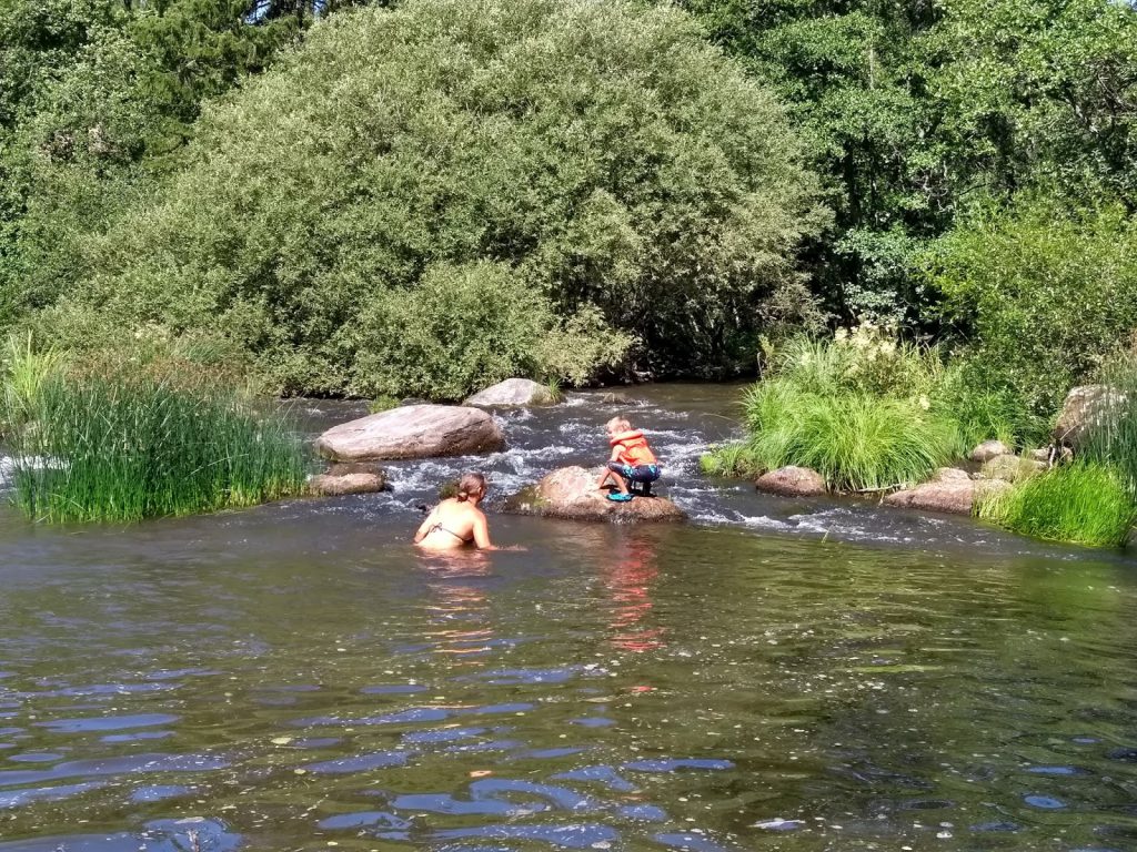 Wir nutzen den Tag um uns ein Kanuvom Stellplatz zu leihen und machten mit den Kindern einen Ausflug flußaufwärts. Dabei wurden wir von hunderten bunten und schillernden Libellen begleitet.