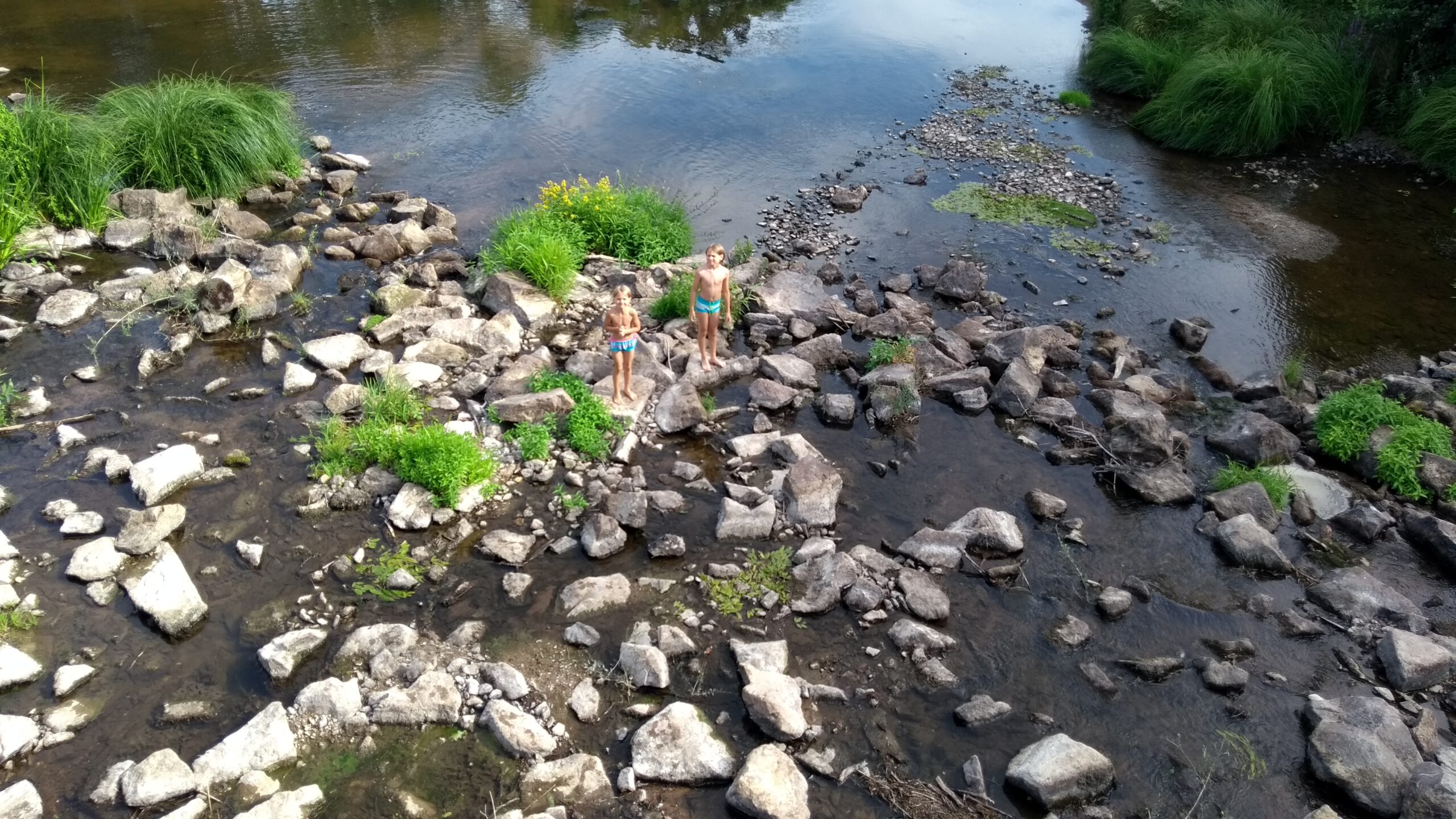 Anschließend geht es weiter Richtung Autun. Am späten Nachmittag machen wir wieder eine längere Pause, diesmal an einem Fluss. Das Wasser ist ganz flach und warm und lädt zum Baden ein. Die Kinder fangen sogar einen Flusskrebs.