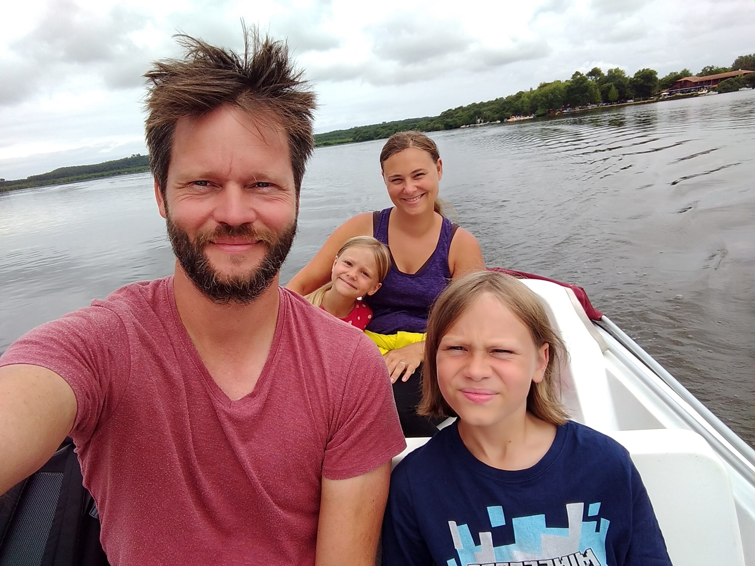 Am See von Leon hatten wir uns gestern, gleich morgens, ein Elektroboot ausgeliehen. Damit sind wir eine Stunde über den See geschippert und haben dabei an „Bord“ gefrühstückt. Unsere Kapitäne Leila und Iven haben dabei abwechselnd gesteuert.