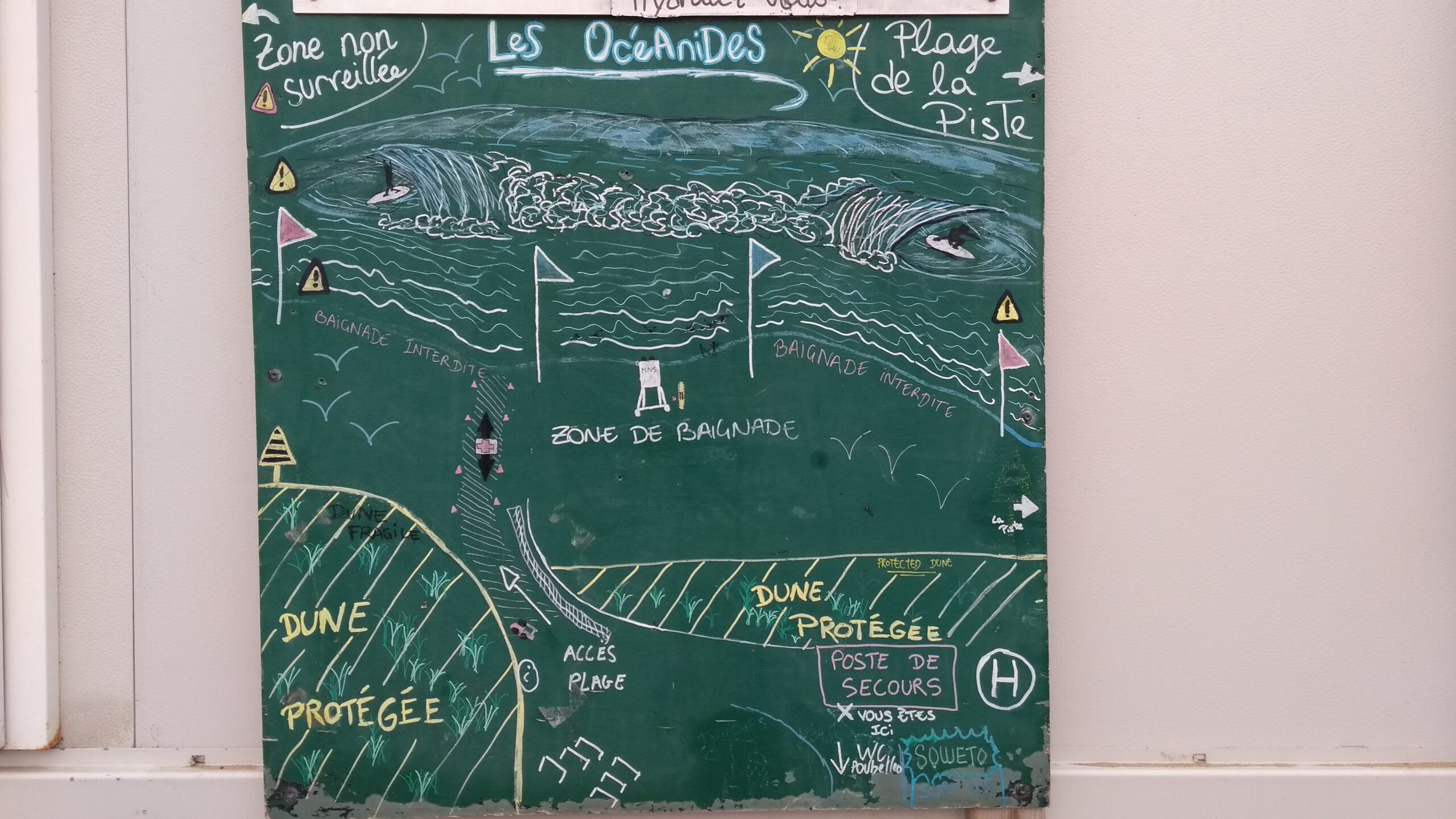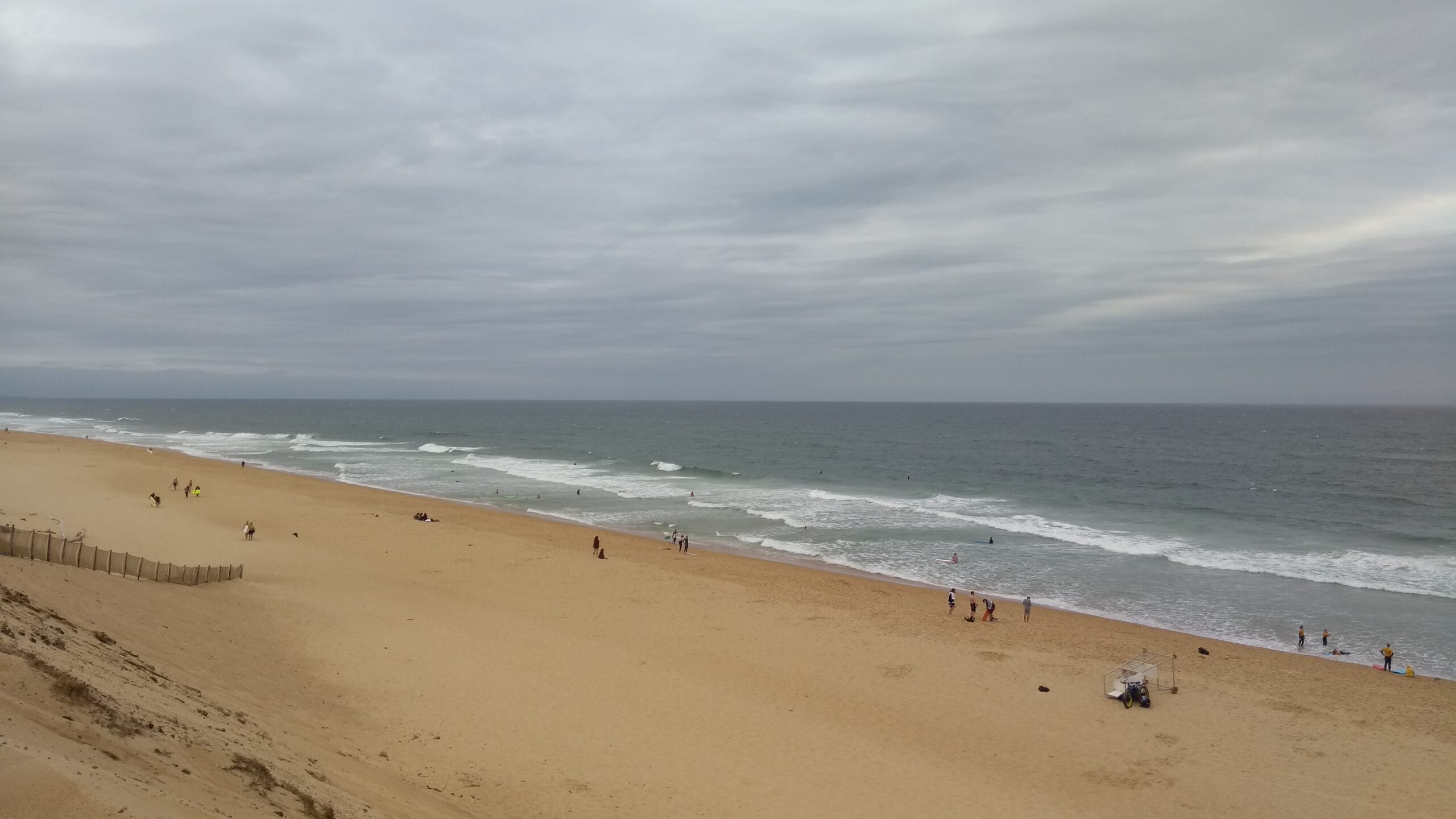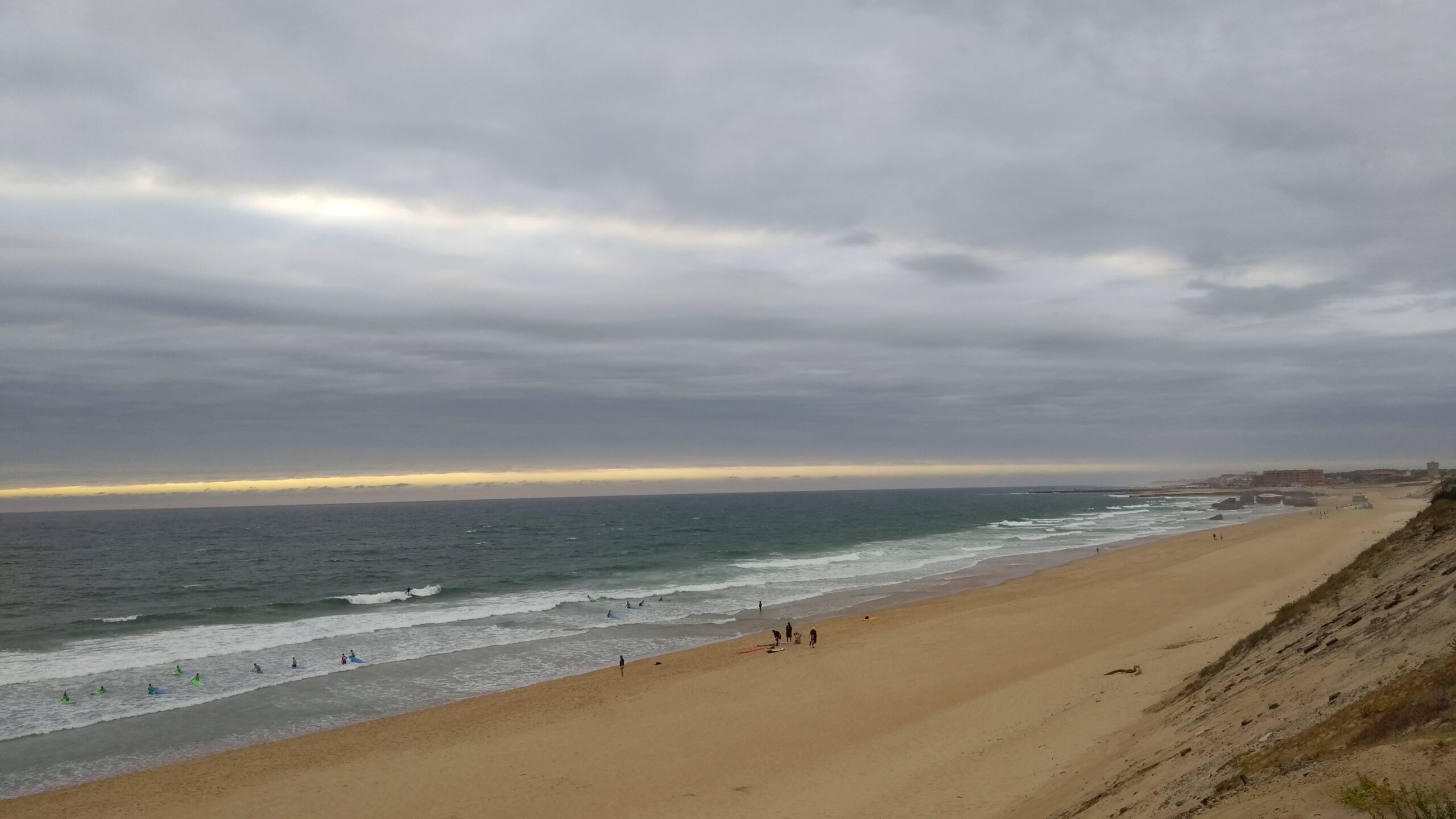 Dann ging es auf, an unseren letzten Platz am Meer. Kurz vor Biarritz sind wir nochmal einen Stellplatz angefahren. Dieser ist diesmal nur ein Parkplatz und nicht besonders schön. Dafür stehen wir direkt hinter der Düne und brauchen nur ein paar Meter bis ans Meer. Wir stürzen uns nochmal ausgiebig in die Wellen und nutzen unser Surfboard. Da das Wetter dann eher stürmisch wird, machen wir es uns dann im Lindbuzzz gemütlich.