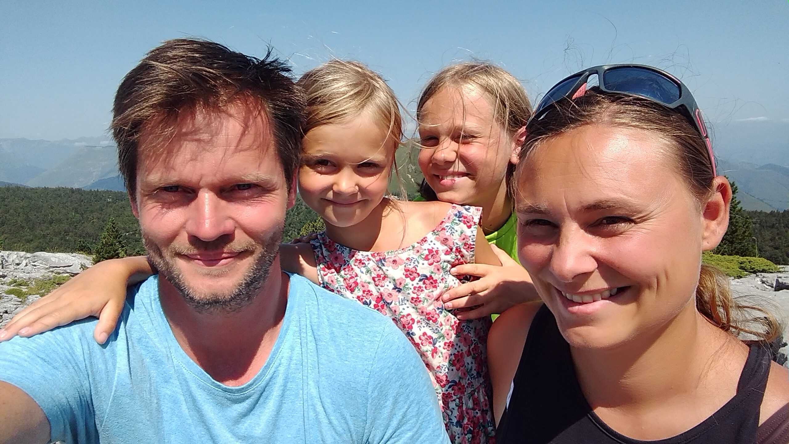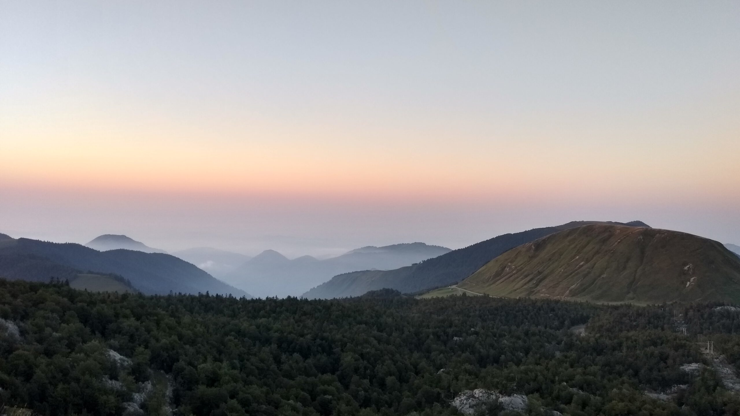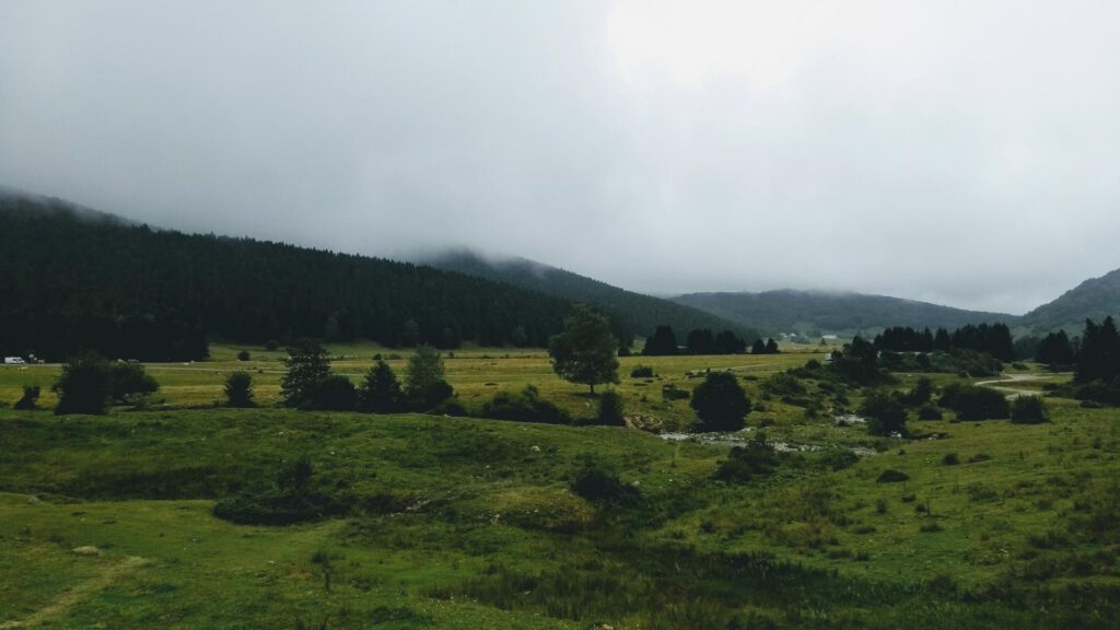 Vom Tal mit Bachlauf ging es Vorgestern weiter durch die Berge. Auf einem Gipfel mit Skilift bei 1700m haben wir uns auf einen großen Parkplatz gestellt. Wir hatten eine herrliche Aussicht über die umliegenden Berge. Sogar einen Adler haben wir fliegen gesehen. Rundherum liefen viele frei Tiere. Es gab Pferde, Kühe, Schafe, Hühner und sogar Schweine. Wir haben zugeschaut, wie die Kühe selbstständig zur Melkanlage laufen. Außerdem sind wir auf einen kleinen Berggipfel gestiegen und auf den umliegenden Felsen rumgekraxelt.