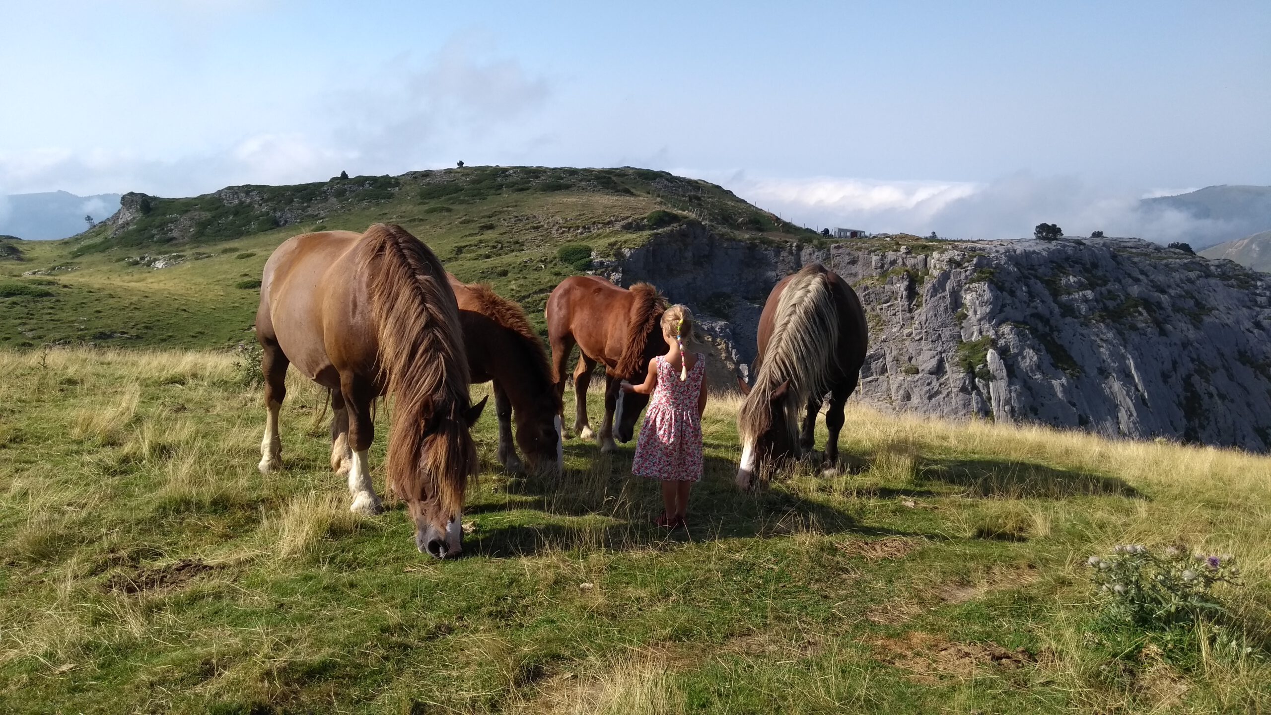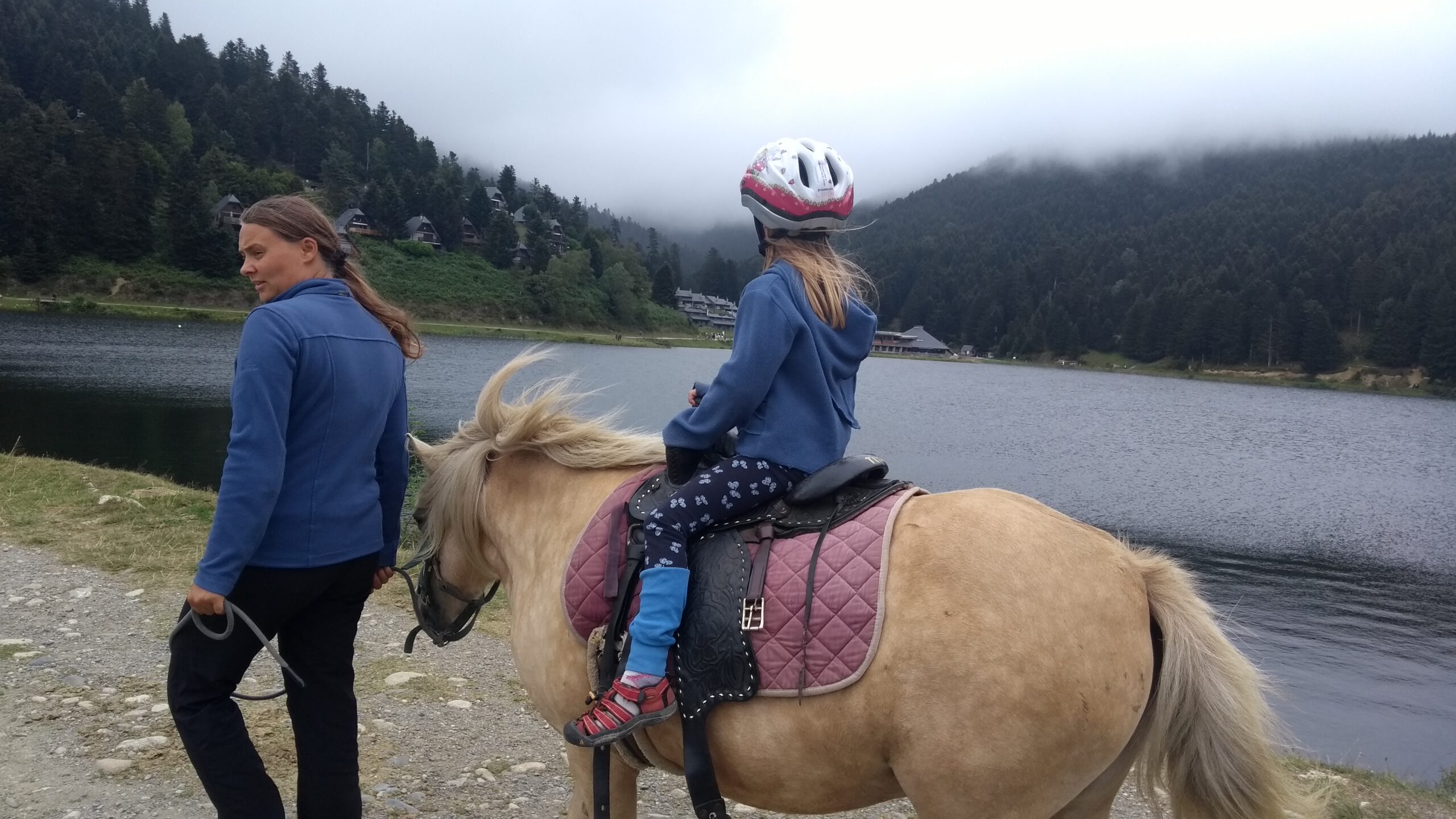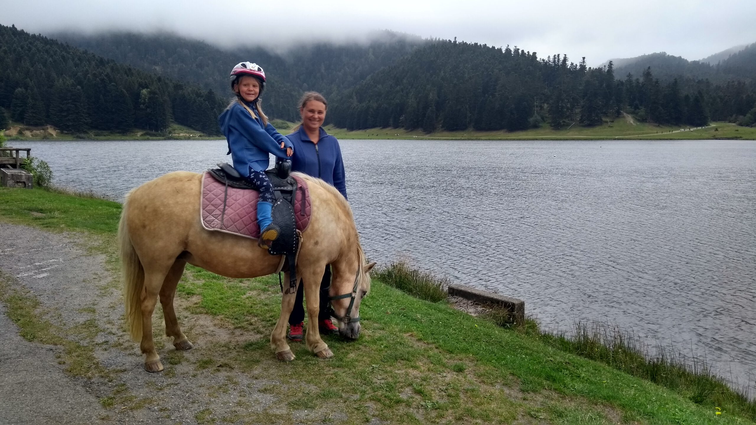 Nun stehen wir an einem Bergsee. Leila hat sich von ihrem Taschengeld nochmal ein Pony für eine Runde um den See geliehen. Das war ganz brav und Leila sehr glücklich.
