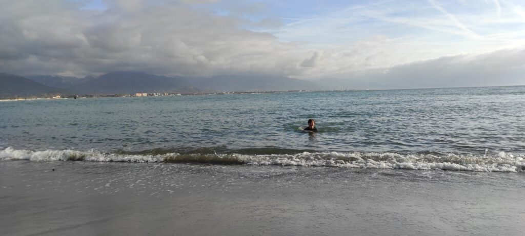 Unseren Heiligen Abend haben wir damit gestartet, nochmal bei Helligkeit an den Strand zu gehen. Wer sich fragt, ob man in Italien im Winter baden kann, die Kinder haben die Frage geklärt. Wobei Luft und Wasser auch nicht kälter sind, als bei dem ein oder anderen Sommerurlaub an der Ostsee. Man darf sich nur nicht von den Italienern verunsichern lassen, die alle in Winterjacke rum laufen.