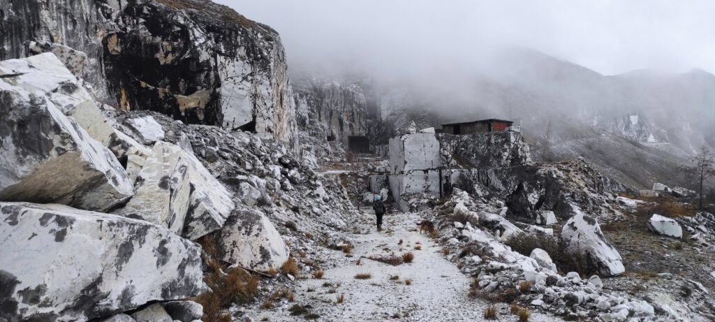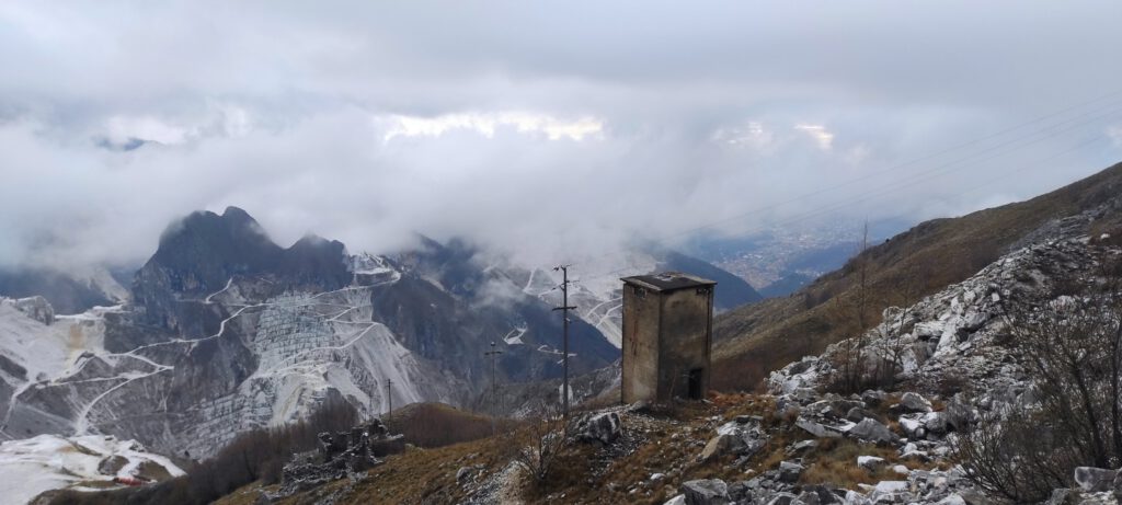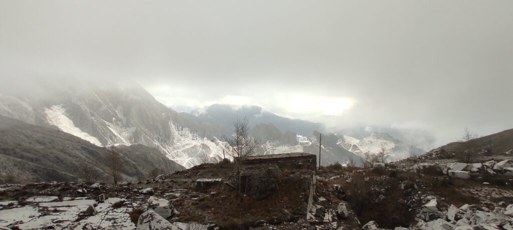 Am Morgen des 25.12 gab es dann also ersteinmal Bescherung und ein Weihnachtsfrühstück. Dann haben wir uns für einen weihnachtsuntypischen Ausflug entschieden. Von einem Einheimischen hatten wir den Tipp bekommen, uns die Marmorfelsen von Carrara anzuschauen. Dafür sind wir 2 Stunden schmale Serpentinen durch die Berge gefahren. Die abenteuerliche Anfahrt wurde aber mehr als belohnt. Es war sehr spannend, beeindruckend und faszinierend durch die Steinbrüche zu laufen. Es war zwar sehr neblig, aber immer mal kurz präsentierte sich uns eine tolle Aussicht!