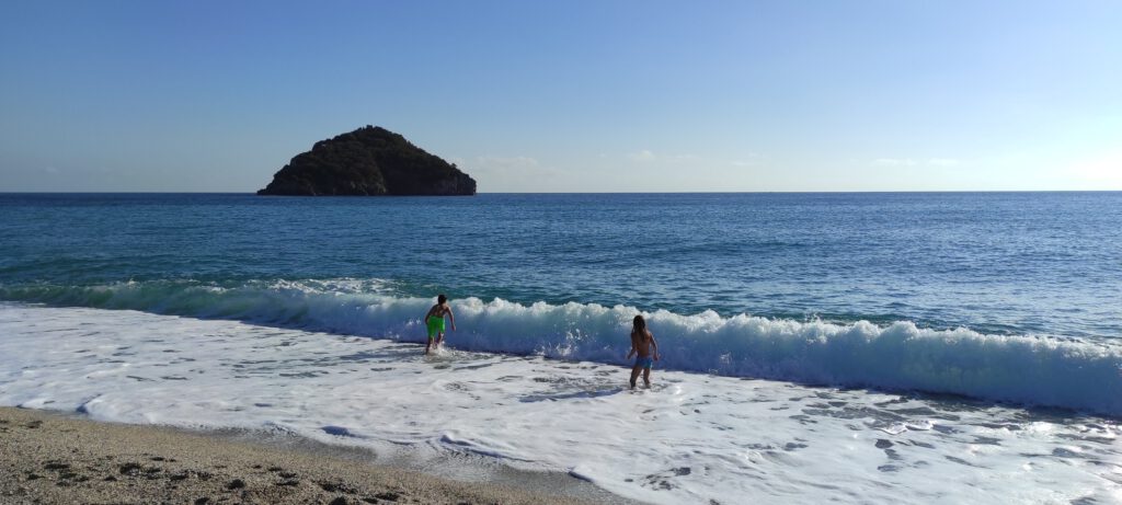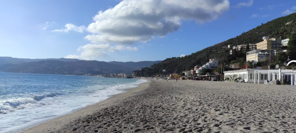 Gegen Abend ging es nochmal ein gutes Stück auf Genua zu. In Santa Margherita haben wir für die Nacht einen Stopp eingelegt. Heute ging es dann an den Strand bei Spotorno, westlich von Genua. Das Wetter ist super, mit strahlend blauen Himmel und der Strand schön leer. Nun war auch ich mal mit im Wasser. Gegen Nachmittag haben wir einen Spaziergang entlang der Promenade gemacht und sind durch die Gassen von Spotorno geschländert. Es gab Eis und nocheinmal Pizza.