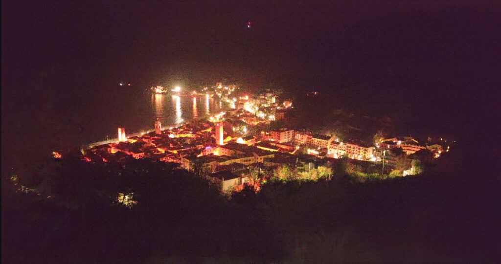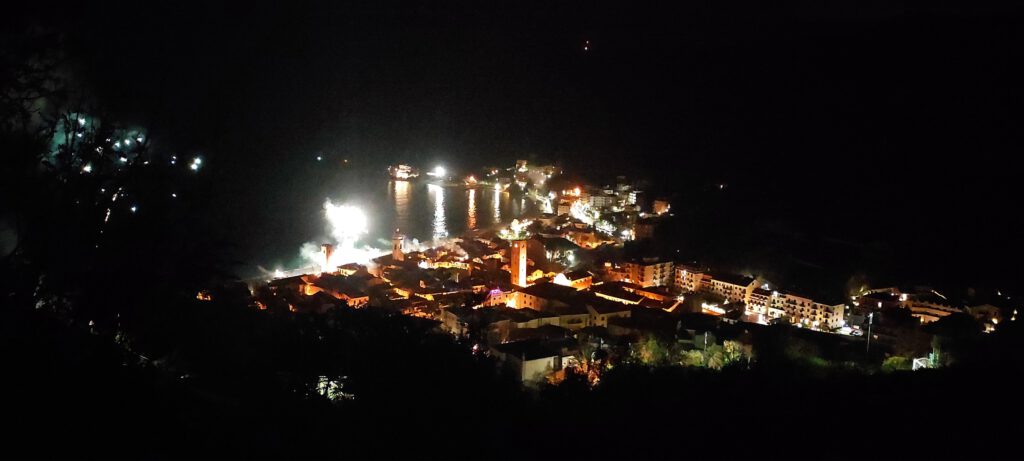 Für den Abend sind wir einen kleinen Pass auf den nächsten Berg gefahren. Die Straße war wiedermal sehr schmal. Am Vormittag hatten wir uns den Platz schon einmal angeschaut und uns an einer Mauer beinahe festgefahren. Von oben hatten wir aber eine wirklich tolle Aussicht auf Noli. Zum Abenbrot gab es ganz typisch für Italien Linsen mit Cotechino, das soll im neuen Jahr Geldsegen bringen. Dazu gab es nochmal Tortellini,Garnelen und einige Knabbereien. Um Mitternacht haben wir dann die schöne Aussicht auf Noli genossen. Es war nicht allzuviel Feuerwerk zu sehen. Aber auf das was da war, hatten wir eine gute Sicht. Für die Kinder gab es von uns auch ein paar kleine Sachen zum anzünden.