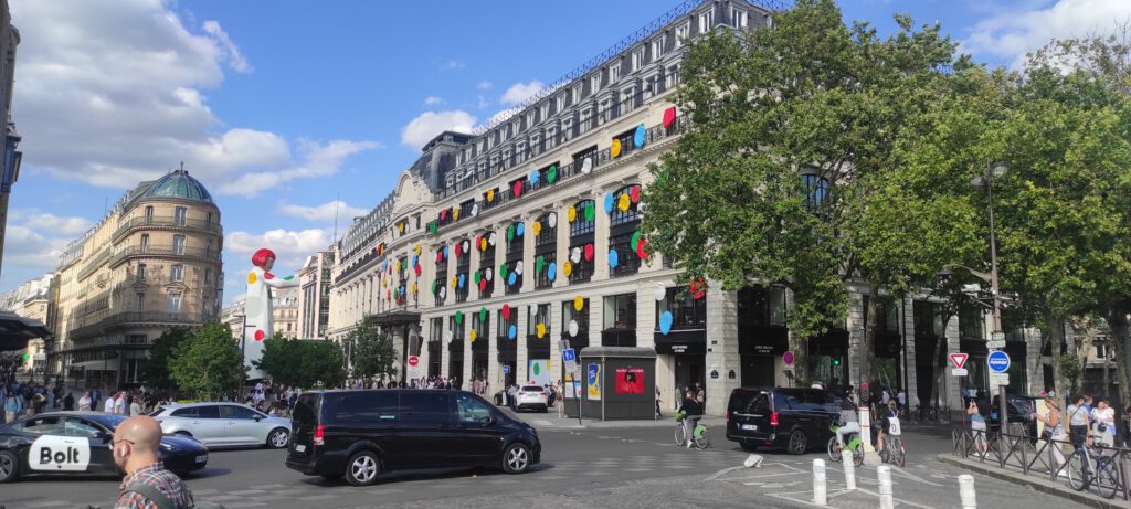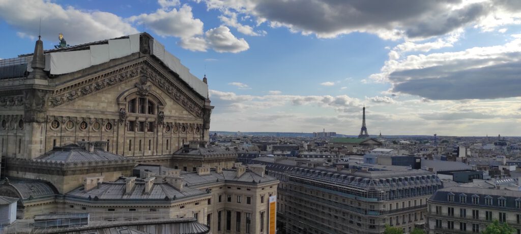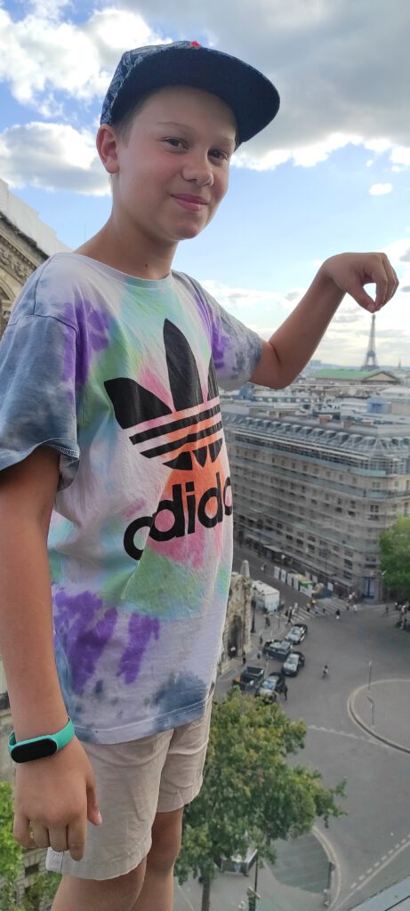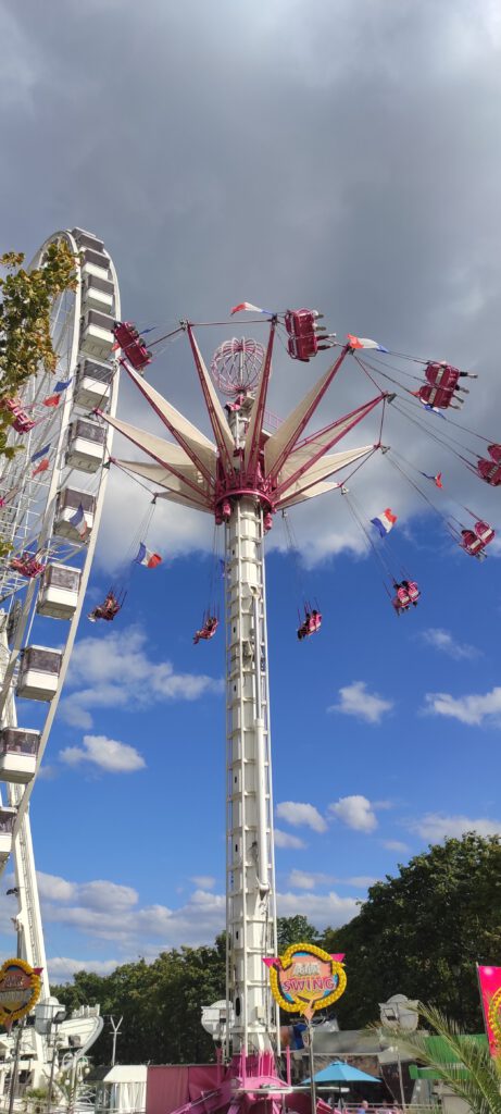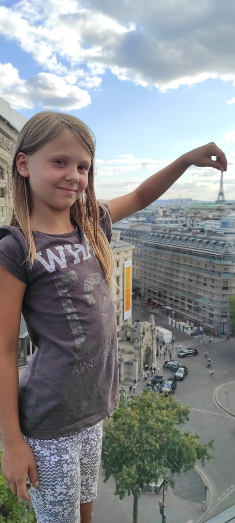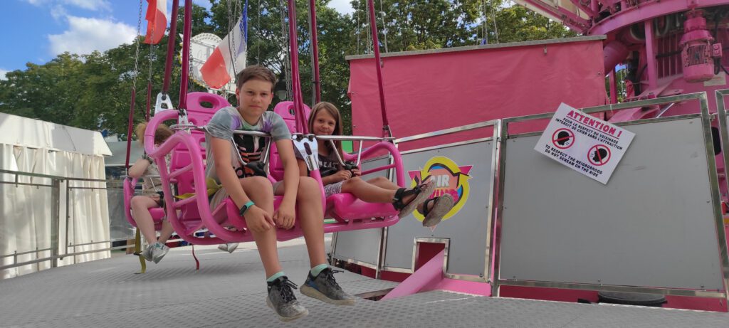Zur Freude der Kinder, war gleich hinter dem Louvre ein Rummel. Die Kinder durften eine Runde Kettenkarussell fahren, bevor es weiter zur Galeries Lafayette ging. Dort gönnten wir uns noch einmal die tolle Aussicht von der Dachterrasse.