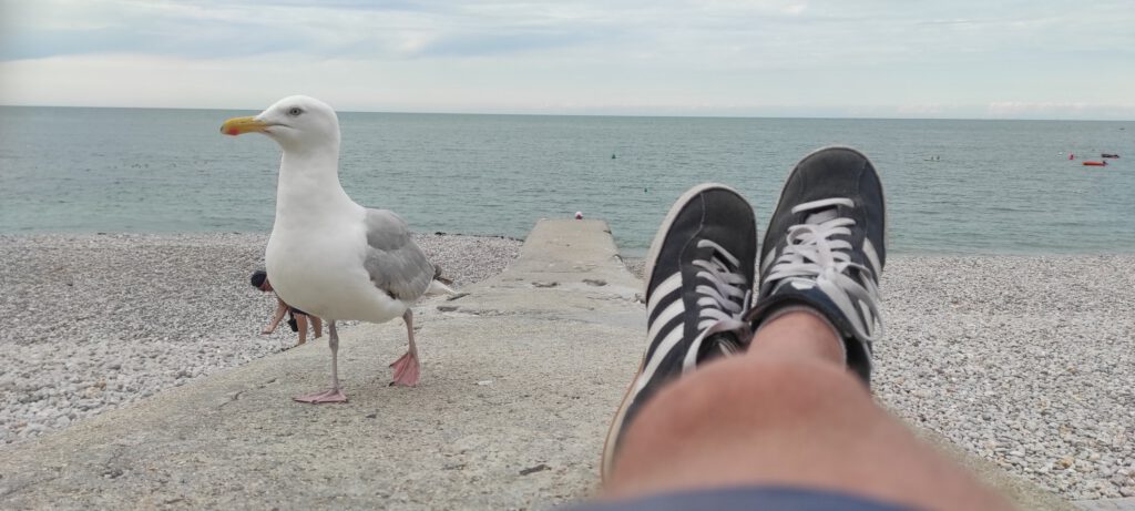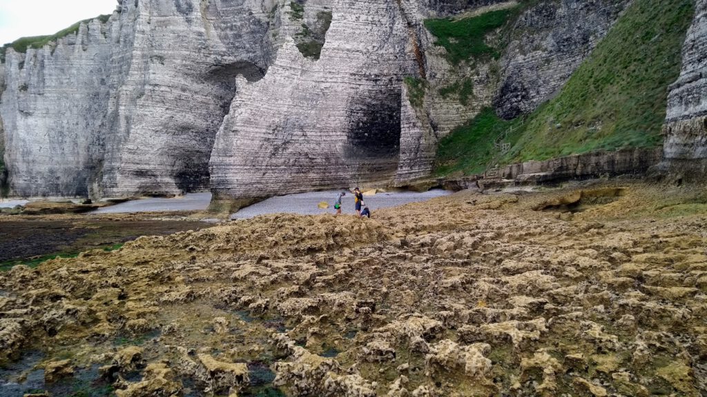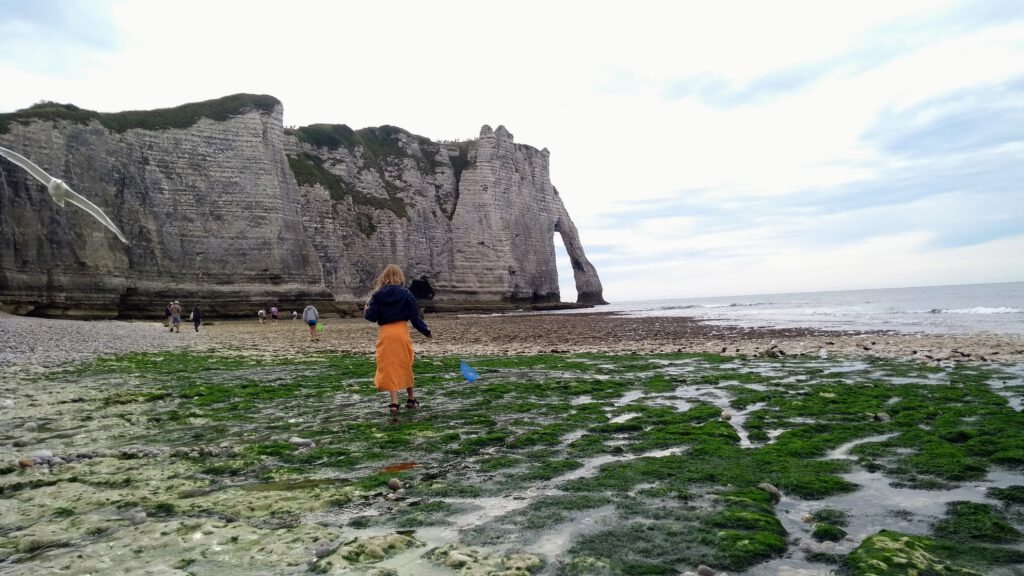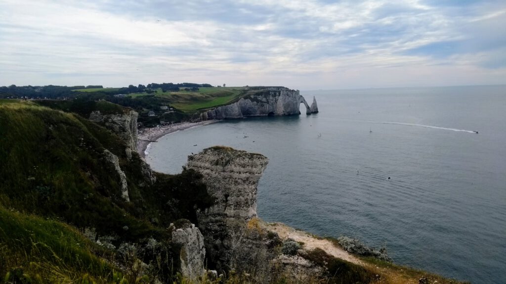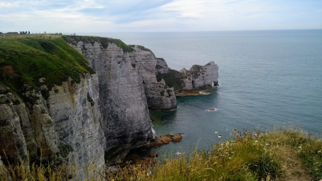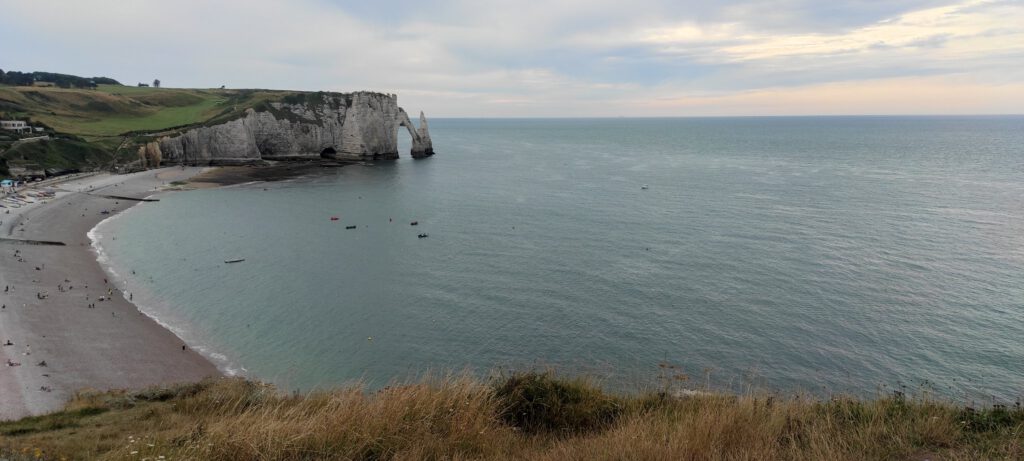 Von Fecamp ging es gestern auf Ètretat zu. Auf einem Bauernhof 4,5 km vorher konnten wir kostenlos parken. Von dort ging es zu Fuß, auf der Steilküste entlang, bis nach Ètretat. Die Aussicht auf die Felsen war superschön. Unterwegs hat Daniel wieder die Drohne fliegen lassen, wobei sie einmal beinahe von einer Möwe angegriffen wurde.