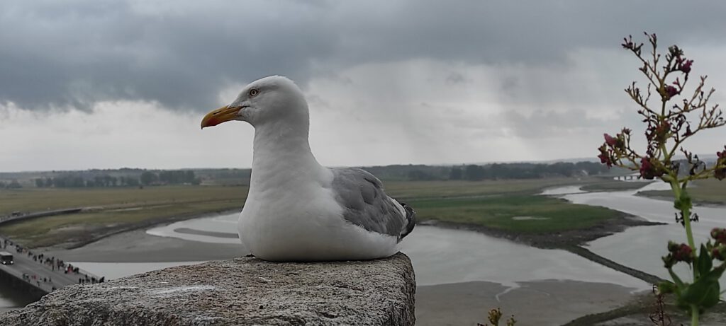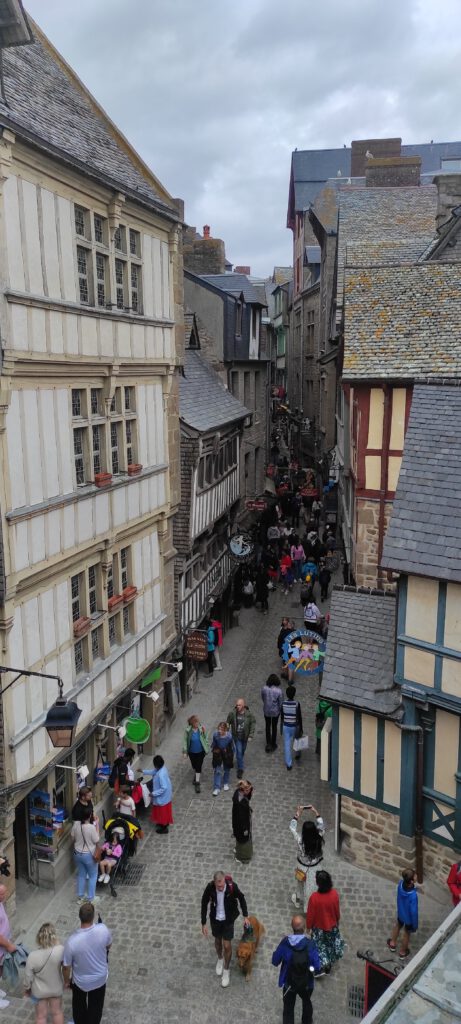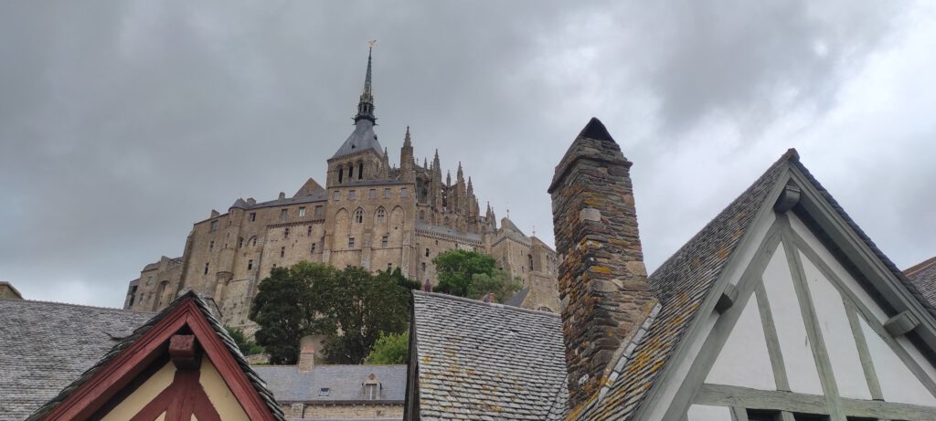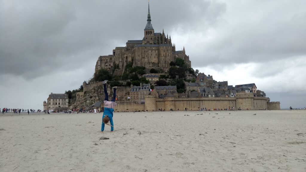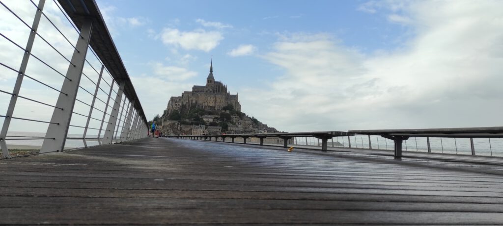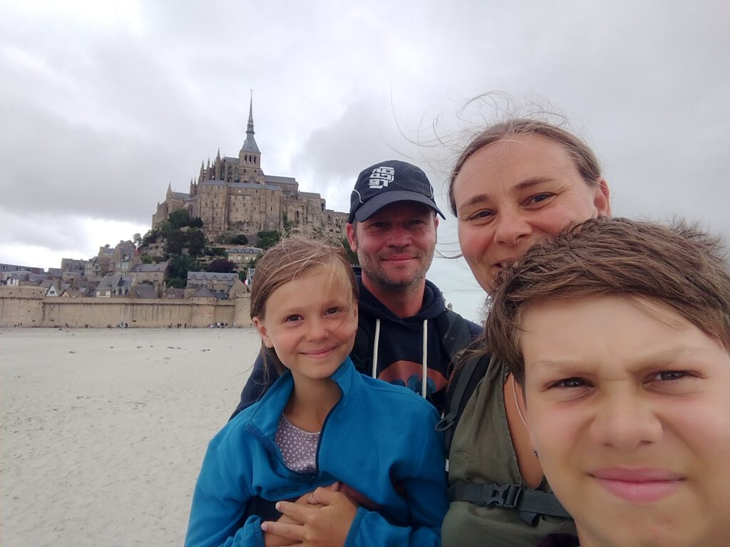 Nach dem Marktbesuch ging es weiter nach Ardevon. Dort haben wir uns auf einen recht hübschen Womostellplatz gestellt. Vom Platz ging es dann direkt mit den Rollern weiter Richtung Le Mont Saint Michel. Ein Stück sind wir dann noch mit einem Shuttlebus gefahren. Als wir an der Insel ankamen, war gerade Ebbe. Es war sehr voll auf der Insel und für unseren Geschmack war es auch zu kommerziell aufbereitet. Dennoch war es sehenswert und wir haben trotzdem einen ruhigen Platz zum picknicken gefunden. Gegen Abend waren wir dann zurück am Lindbuzzz.