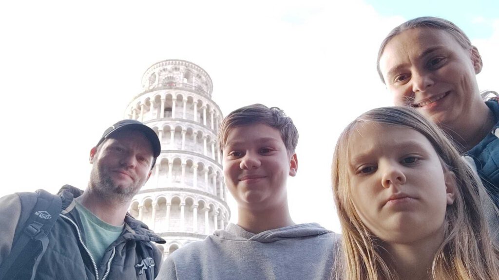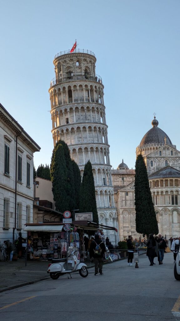 Vorgestern sind wir gegen Mittag in Pisa angekommen und haben einen Spaziergang zum schiefen Turm gemacht. Der Stellplatz auf dem wir standen war bis zum Abend knackig voll und wir standen wie die Ölsardinen. Auch am schiefen Turm war eine Menge los. Die Kinder waren trotzdem beeindruckt und mit ein paar Souvenirs im Gepäck haben wir dann gestern Pisa wieder verlassen.