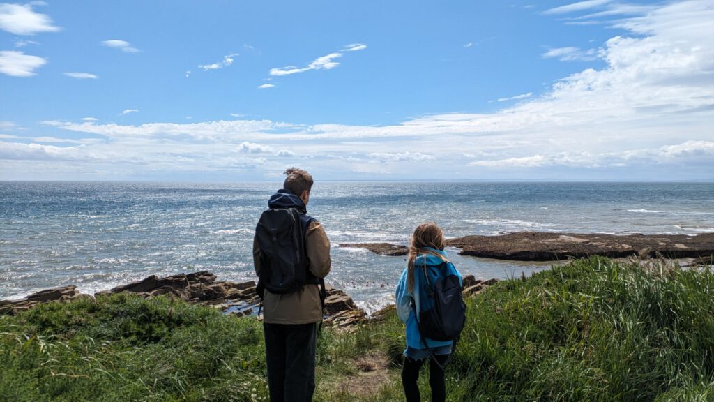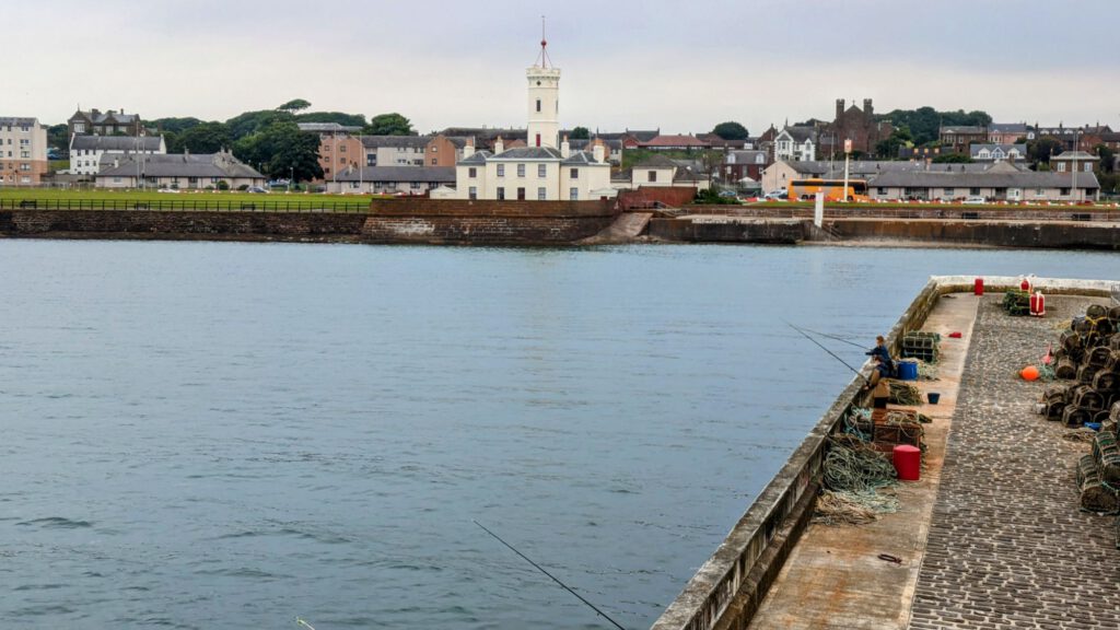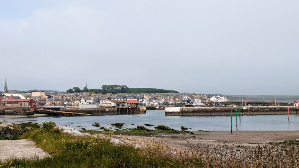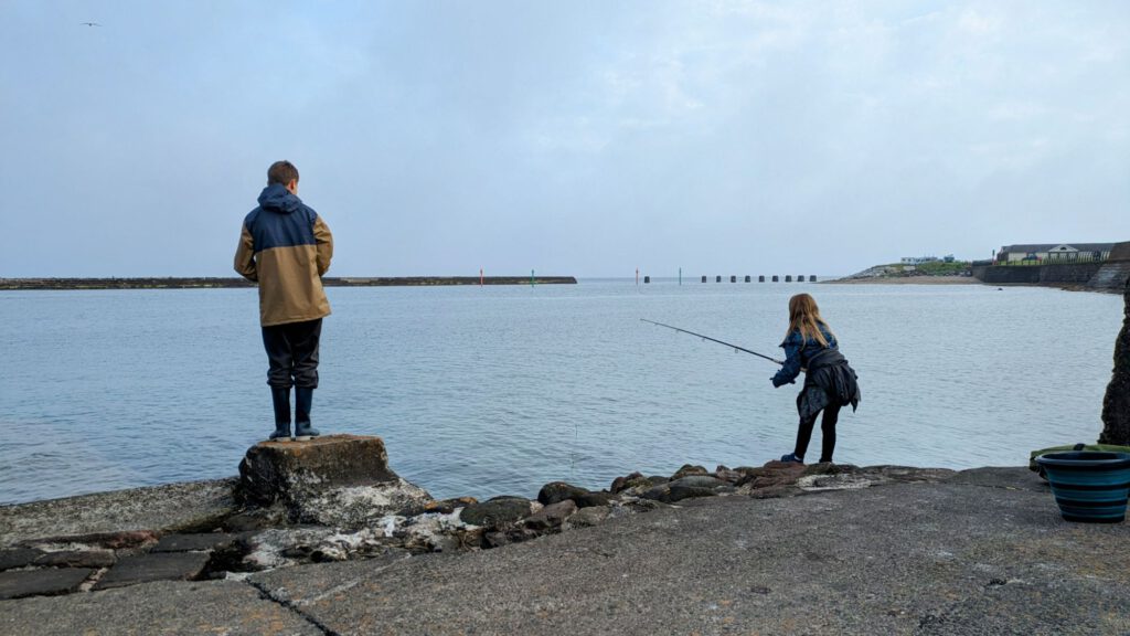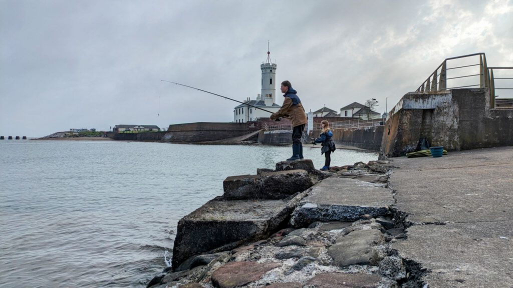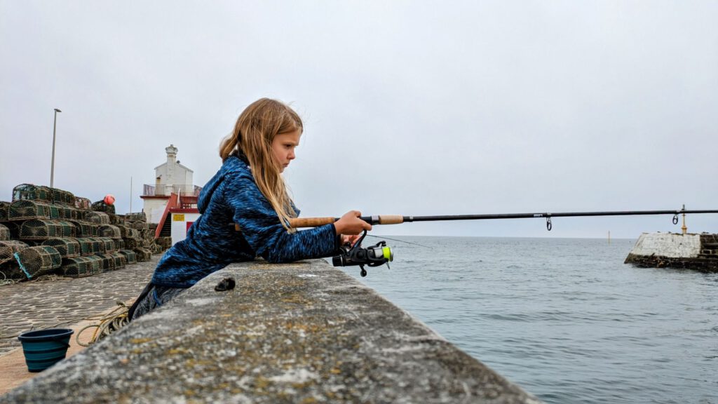Von Edinburgh ging es vorgestern nach Arbroath. Dort kamen wir am frühen Nachmittag an und stellten uns auf eine, für Wohnmobile zugewiesene Parkfläche mit Sicht aufs Meer. Die Kinder kramten gleich ihre Angelsachen vor und starteten zum Fischfang. Als die Flut kam mussten sie allerdings weichen.