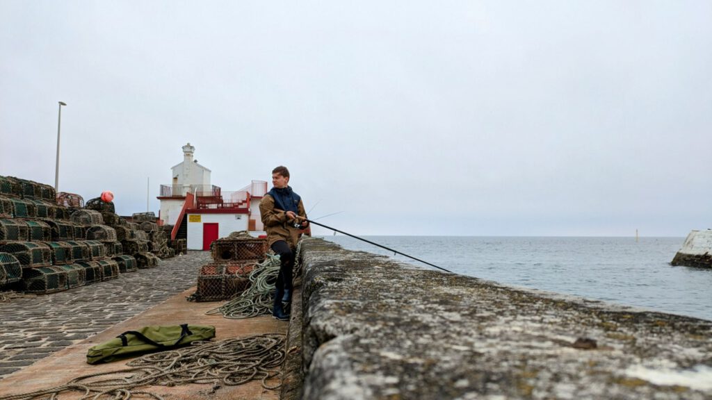 Nach einer Pause versuchten sie ihr Glück nochmal im Hafen und bekamen von Einheimischen noch Tipps für die beste Stelle. Aber der Fisch blieb aus und ich bekam Hunger, also ging es ohne Fisch zurück.