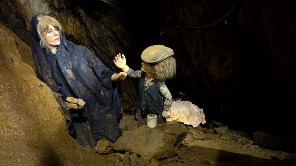 Danach ging es zur nächsten Kupfermine. Diesmal in eine unterirdische. Wir haben uns Tickets geholt, Helme bekommen und konnten dann die unterirdischen Gänge alleine erkunden. Es ging viele Treppen durch den Berg nach oben, so dass wir zum Schluss auf dem Berg wieder herausgekommen sind. In dieser Mine wurde neben Kupfer auch Gold, Silber und Eisenpyrit abgebaut. Die Frauen waren für das sortieren der Steine zuständig und die Kinder für das zerschlagen der Steine.