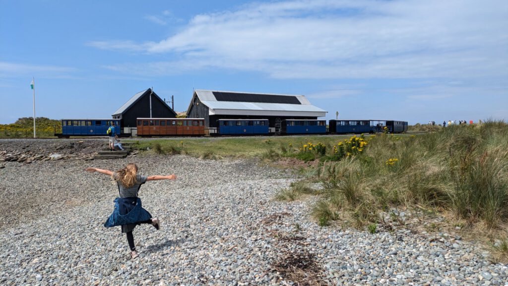 Am Nachmittag sind wir dann weiter südlich nach Fairbourne gefahren und haben uns dort auf einen kleinen Stellplatz gestellt. Da der sehr gut zwischen Strand und einer Schmalspurbahn liegt, sind wir gleich zwei Tage geblieben.