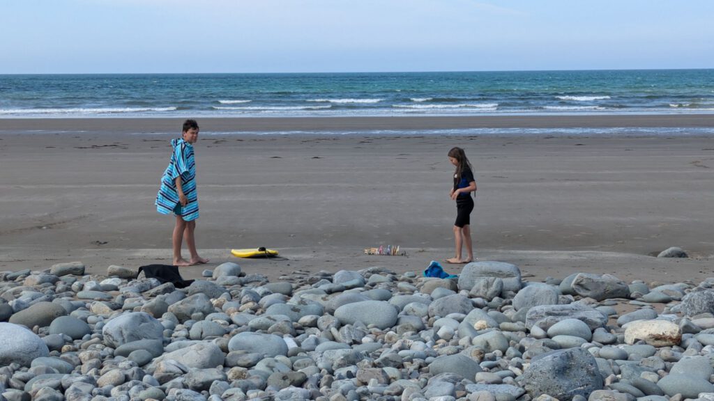 Heute ist nochmal Badetag. Das Wasser ist viel wärmer, als das in Schottland der Fall war. Uns kommt es echt warm vor, obwohl wir schon von Britten angesprochen wurden sind, ob das Wasser nicht sehr frisch ist.