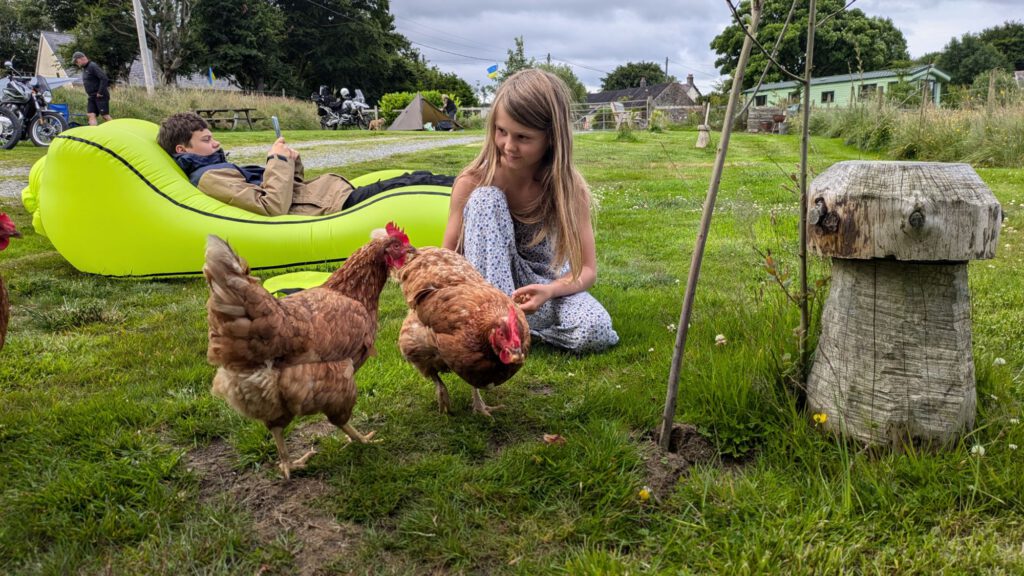 Diesmal gab es am Platz handzahme Hühner, die zum Abendessen vorbei kamen und ihren Anteil wollten.
