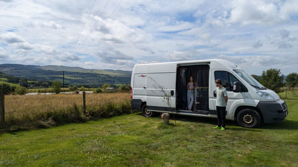 Von Fairbourne ging es weiter in eine hügelige Landschaft irgendwo im Nirgendwo. Für nur 5 £ haben wir uns dort auf einen kleinen privaten Mini-Campingplatz gestellt. Außer uns waren noch ein paar Motorradfahrer und ein paar Jeeps mit Zelten da.