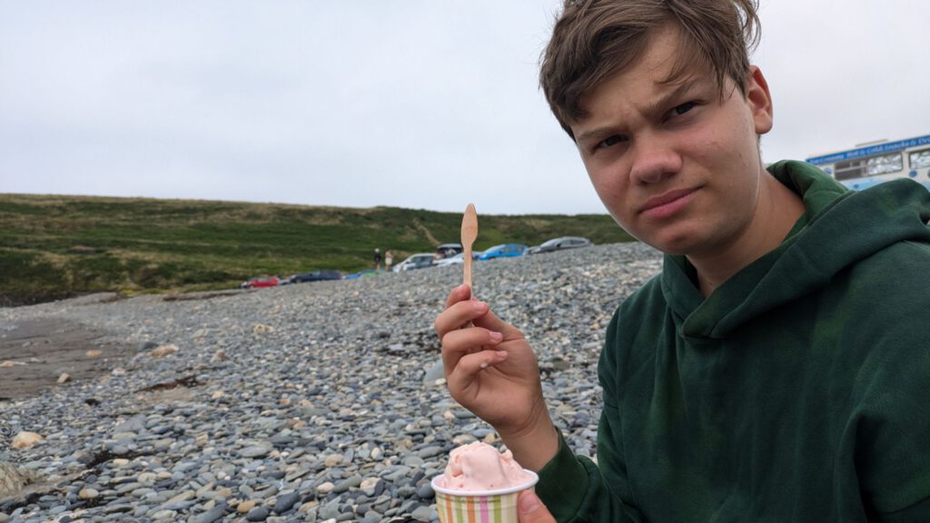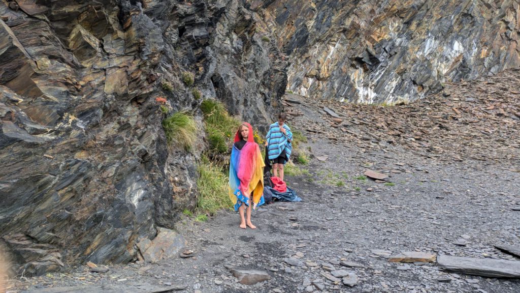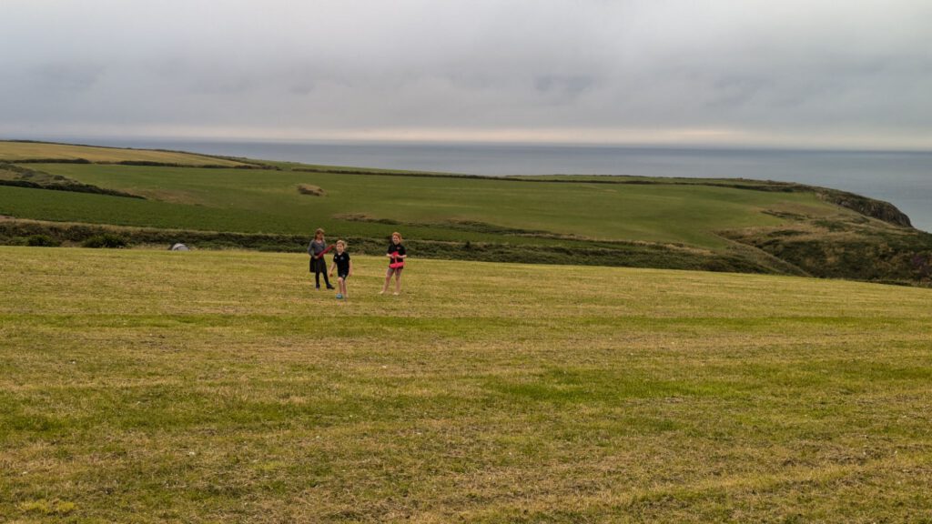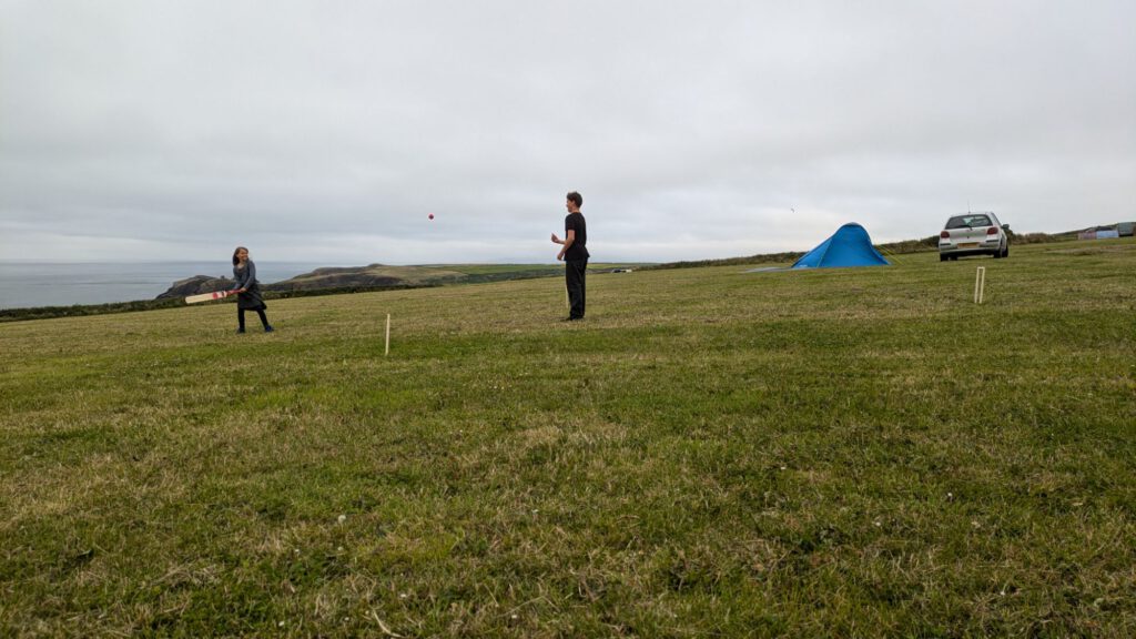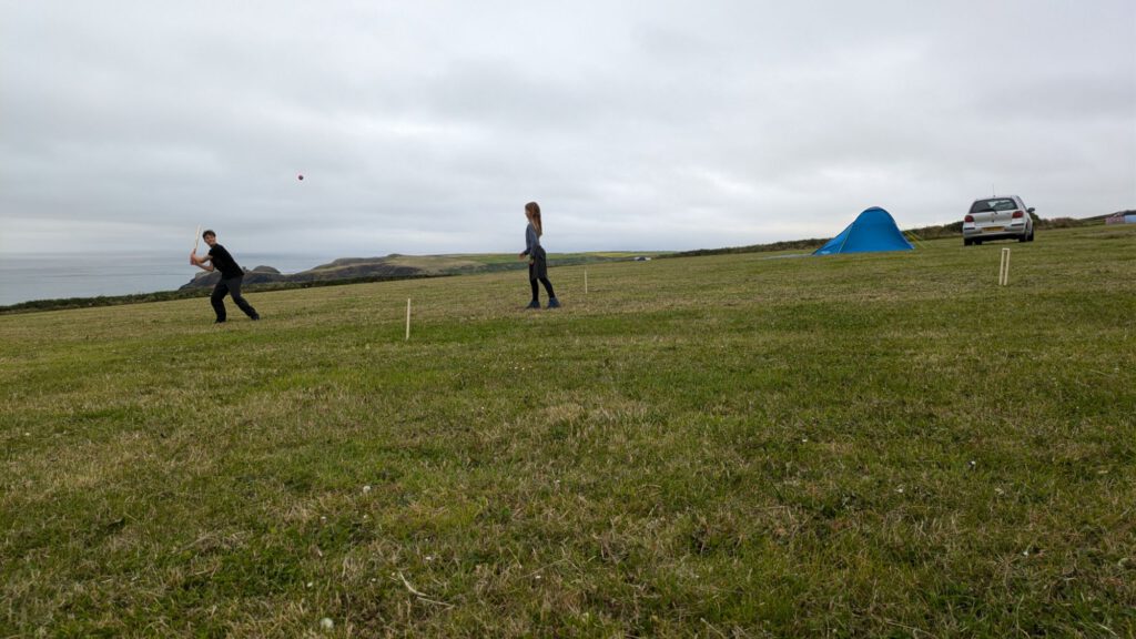 Nachdem wir zurück auf dem Campingplatz waren haben die Kinder ihr neues Cricketspiel getestet. Inzwischen sind wir gut angepasst, Leila läuft fast nur noch im britischen Schulrock rum und die Kinder spielen Cricket.