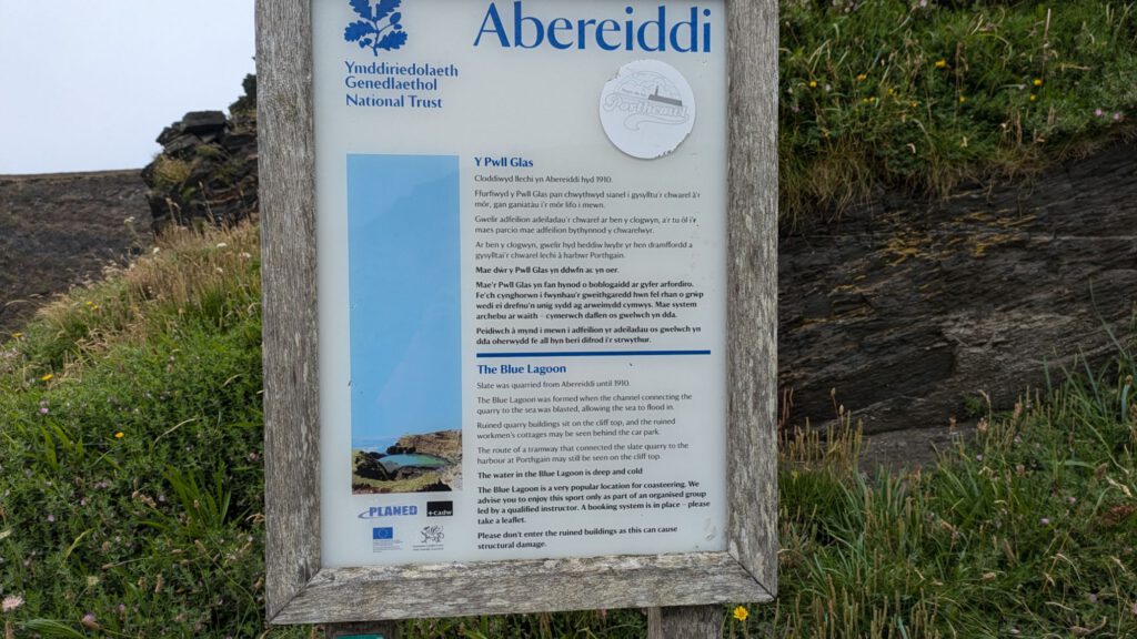 Heute sind wir dann nur eine halbe Stunde weiter an der Küste entlang gefahren, bis auf einen großen Campingplatz. Das ist unser erster richtig großer Campingplatz dieser Reise und auch der teuerste. Aber er hat dafür auch eine spektakulär tolle Lage. Nach einer kurzen Mittagspause ging es den Pembrokeshire Coast Path entlang bis zur Blue Lagoon.