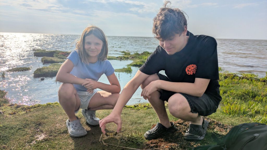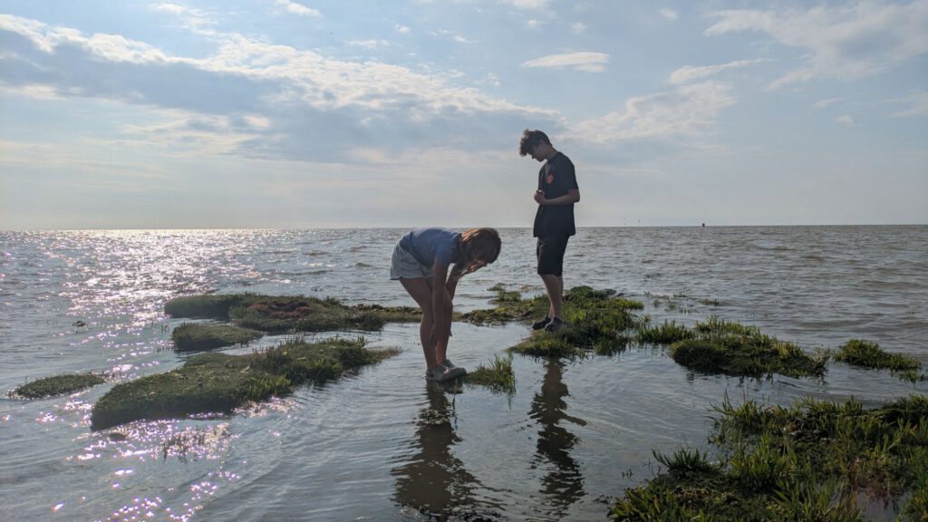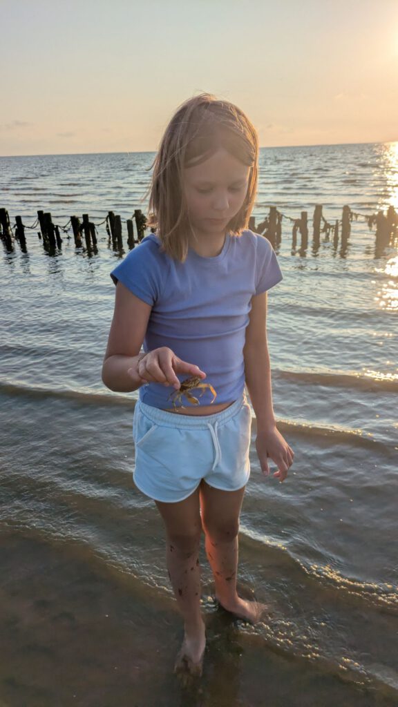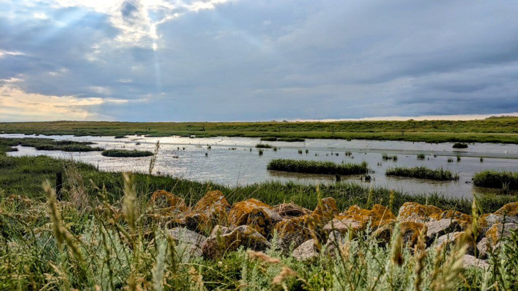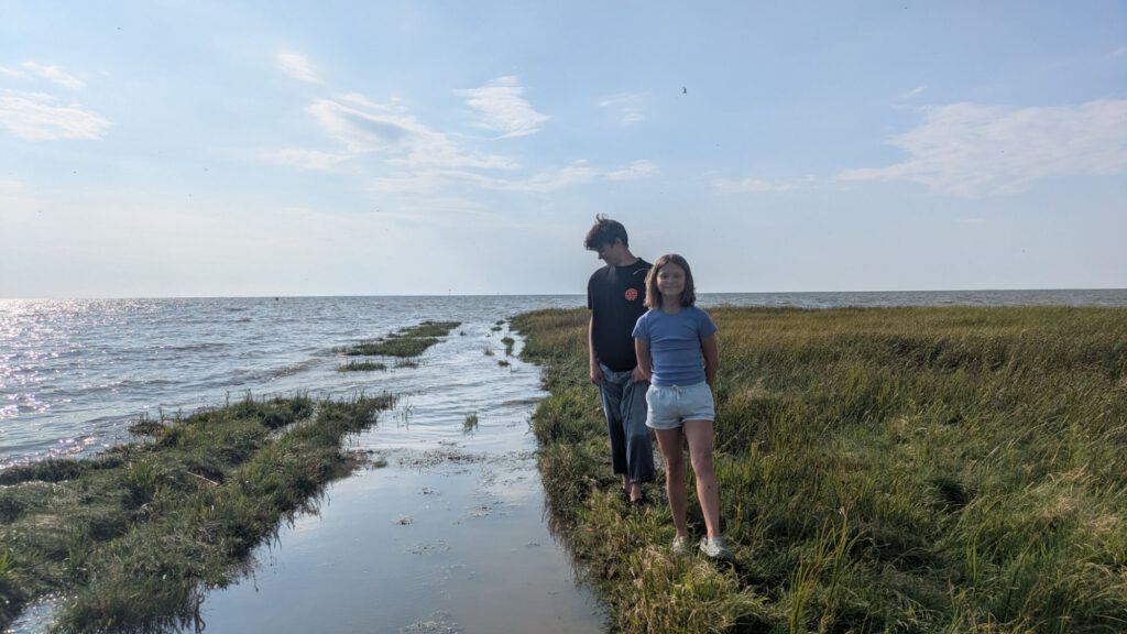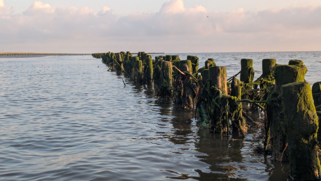 Gleich hinter der Grenze sind wir einen Platz am Meer angefahren. Hier gab es einen Aussichtsturm, viele Vögel, Krabben, Watt zum erkunden und einen tollen Sonnenuntergang.