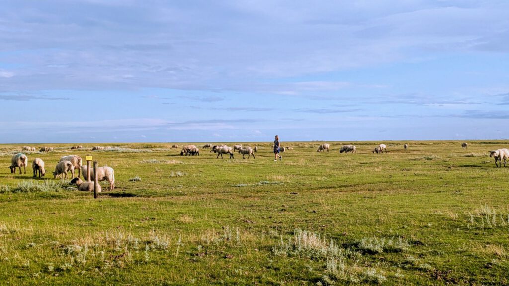 Am Sonntag gab es noch einen Abendspaziergang am Deich entlang. Dort gab es viele Schafe und Wasservögel zu sehen.