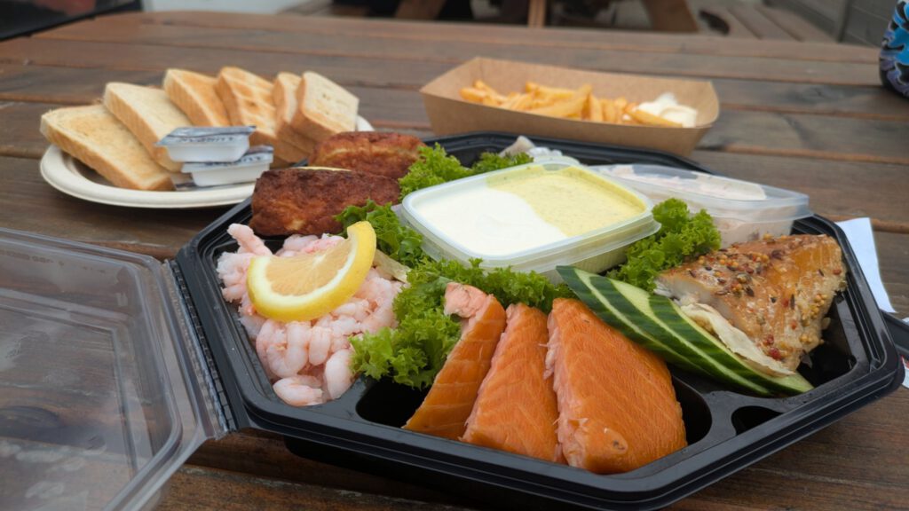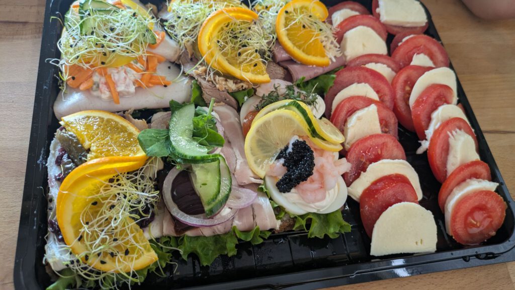 Zum Abendessen gab es dann dänisches Smørrebrød aus dem Supermarkt.