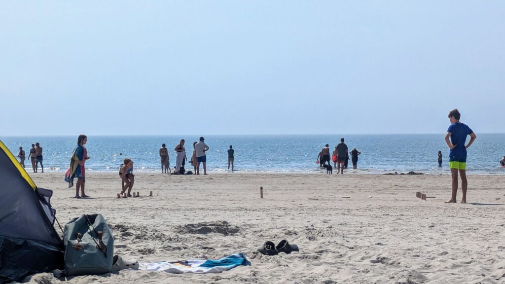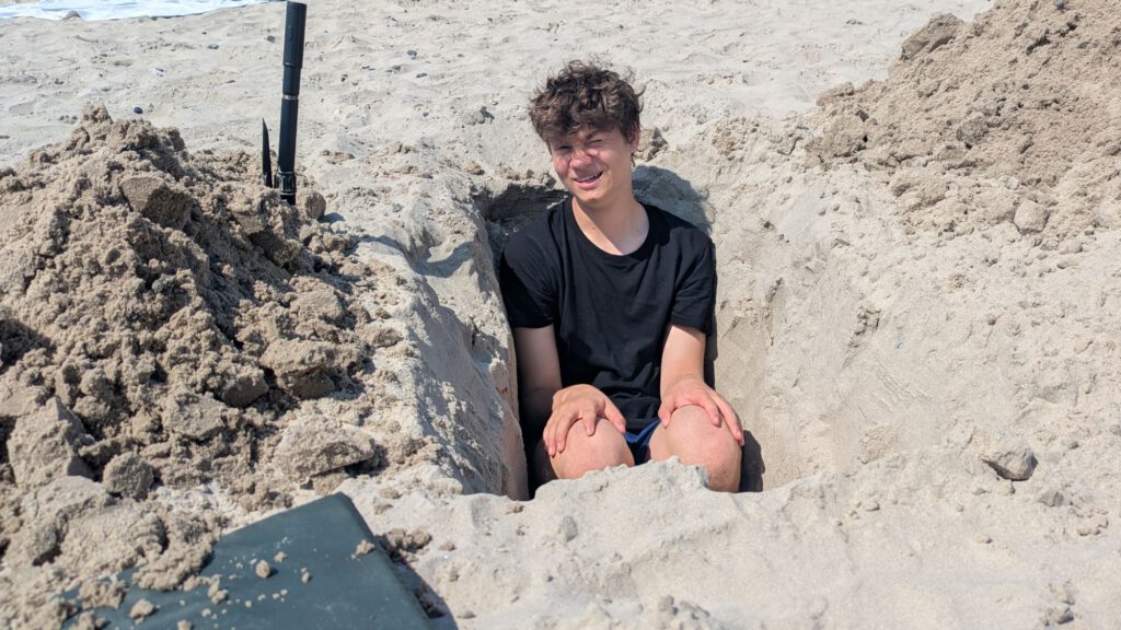 Heute hatten wir dann schönstes Strandwetter und haben das auch voll genutzt. Während Leila mit einem anderen Mädchen gespielt hat, hat Iven tiefe Krater in den Sand geschaufelt.