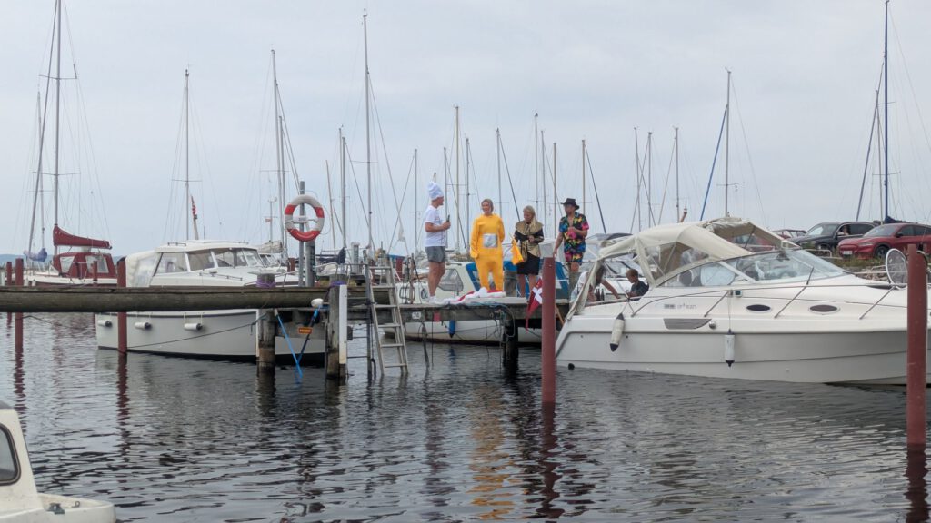 Da in Faldsled Byfest im Hafen war haben wir entschieden auch noch den Folgetag dort zu bleiben. So konnten wir erleben wie ein kleines Volksfest auf dänisch läuft. Vorallem das „von der Planke“ schubsen, dass am Nachmittag stattgefunden hat, war lustig. Die angetretenen Kandidaten waren im Kostüm.