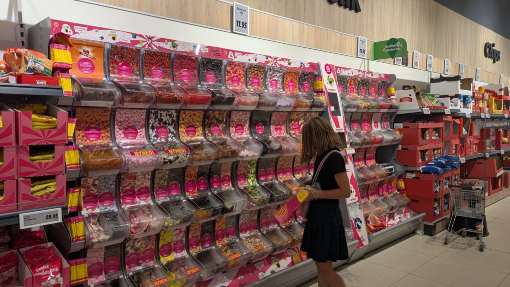 Aabenraa haben wir unsere letzten Kronen nochmal in Süßes umgesetzt. Die Selbstbedienungsregale im Supermarkt haben die Kinder sehr geliebt.