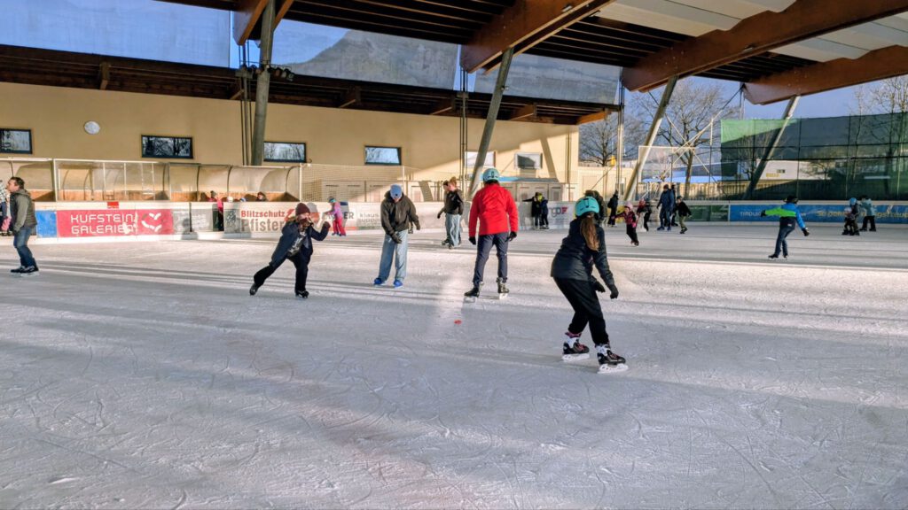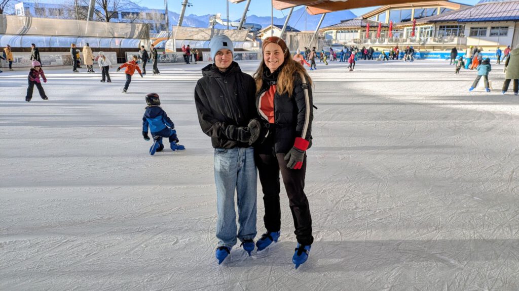 Gestern ging es nach einem späten Frühstück auf eine Eislaufbahn in Österreich. Dort haben wir mit und ohne Puck fleißig unsere Runden gedreht. Iven und ich standen länger nicht auf Schlittschuhen. Wir haben uns aber nach einer kleinen Eingewöhnungszeit auch wieder an die Materie gewöhnt.