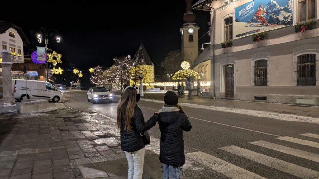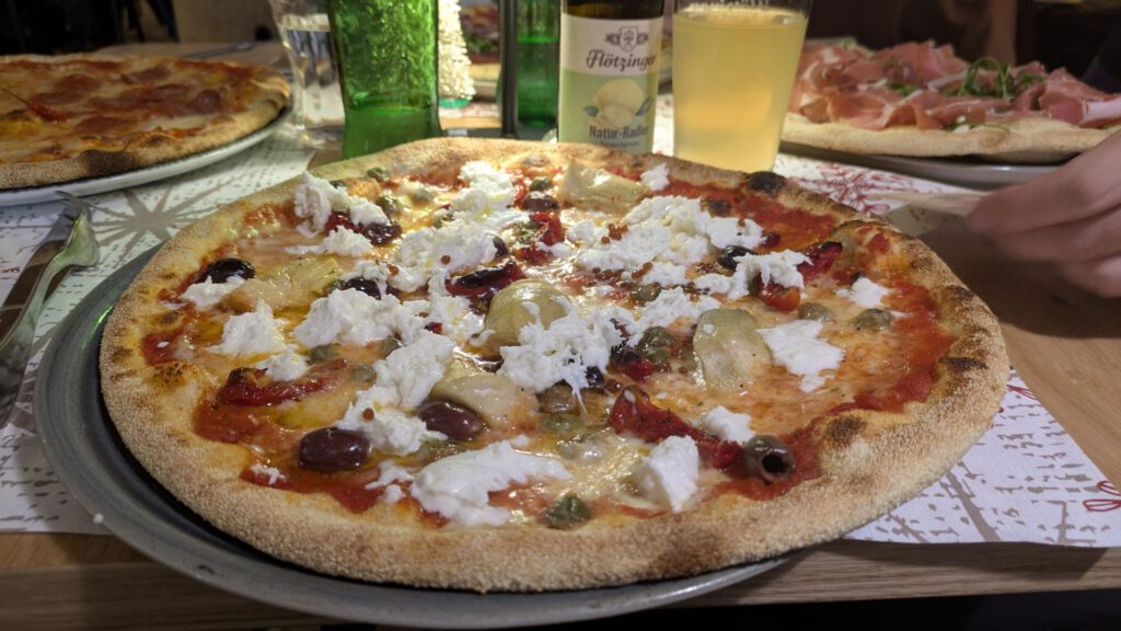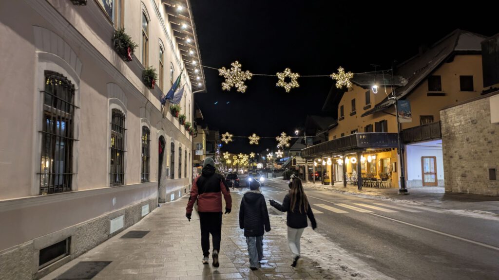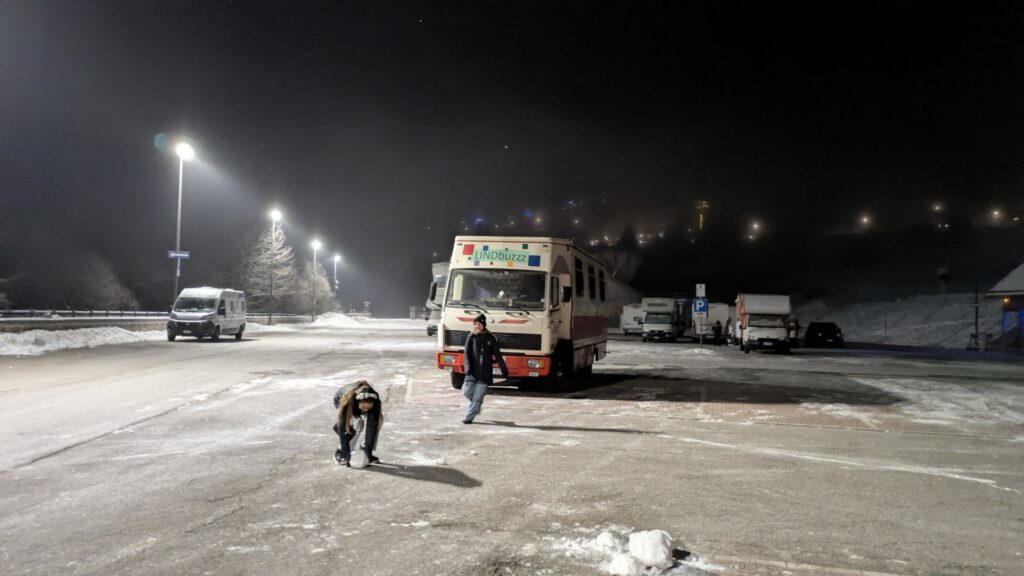 Gestern sind wir dann wieder mit dem LINDbuzzz gestartet und bis nach Tarvis in Italien rein gefahren. Unterwegs gab es wieder reichlich Stau, so dass wir erst spät ankamen. Die Kinder haben gleich noch den vorhandenen Schnee genutzt, um eine Runde Poporutscher zu fahren. Danach gab es noch sehr leckere italienische Pizza.